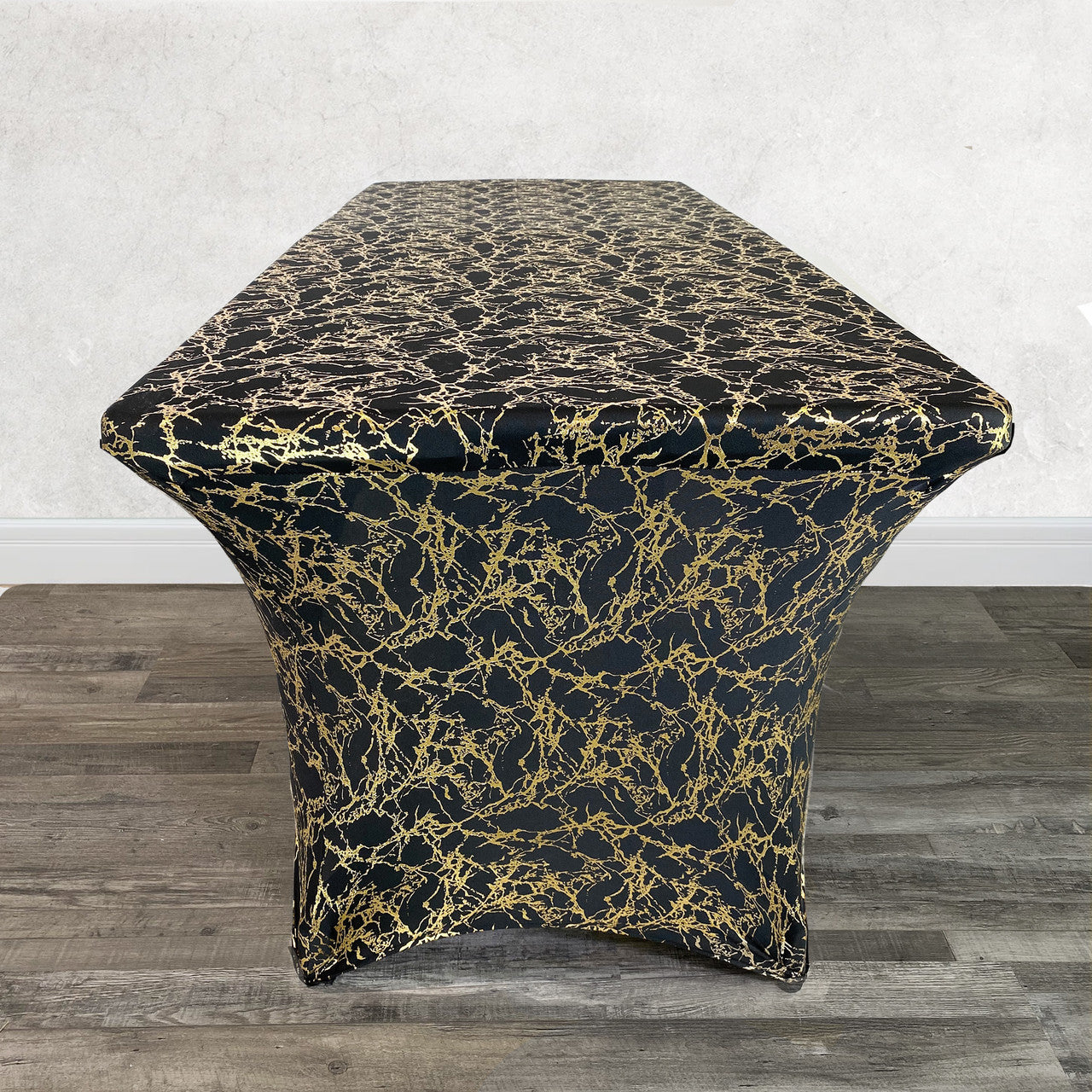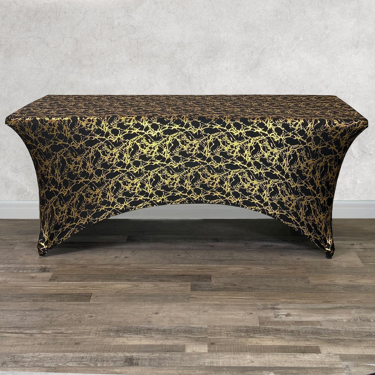 Stretch Spandex 6 ft Rectangular Black Table Cover With Gold Marbling