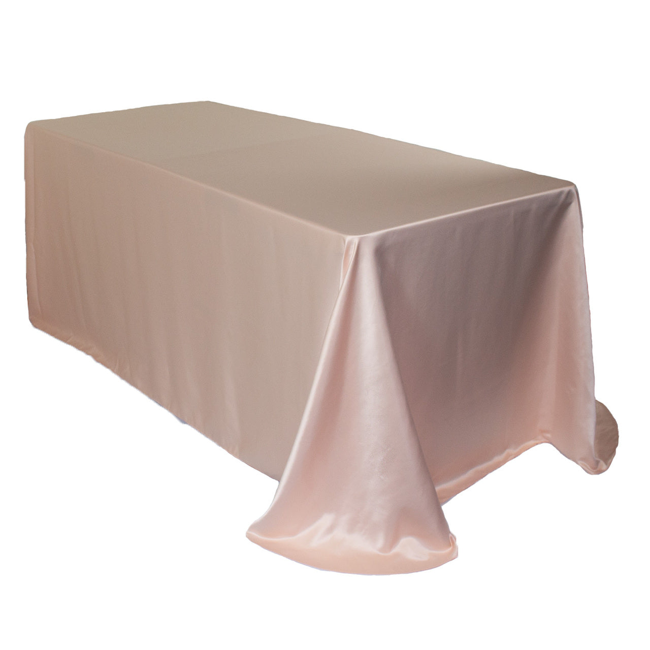 Cloth napkins and linen tablecloths. These are the focal points of any luxurious event or elegant wedding reception table. Aside from its main use of being a table linen, our 90 x 156 inch l'amour rectangular tablecloth in blush will definitely help you put together a cohesive, wedding design--as far as creating color themed weddings is concerned. These blush tablecloths feature the elegant, matte appearance that lamour fabrics are known for. Use them as a key component of your style palette, just like what event planners would do. Implement style and hue elements by using cloth napkins instead of other wedding decor. As part of our commitment to the wedding industry, we only sell high quality blush lamour tablecloths at affordable, wholesale prices.