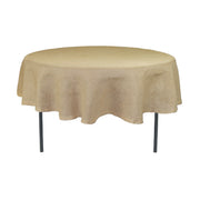 Our 90 inch round burlap tablecloths are made from high quality and durable burlap material. These round tablecloths are seamless (crafted from a single piece of burlap fabric) and feature serged edges for extra durability. When used on a 5 ft or 60 inch round table with a 30 inch height, the 90 inch round table linen offers a tablecloth drop of 15 inches--granting guests more leg room. Or 21 inch drop on a 48 inch round table. Some wedding planners use this tablecloth as a stylish 90 inch round table overlay on top of a rectangular table linen. You can also create the popular scalloped overlay style by using multiple 90 inch tablecloths as overlays on a long table.