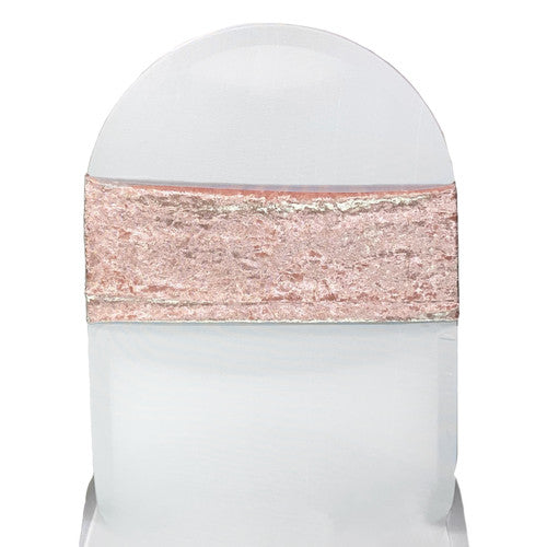 Our blush velvet stretch spandex chair bands exemplify modern sophistication and affordable elegance. They are designed to complement spandex chair covers in weddings, quinceañera parties, banquet events, corporate affairs, and other special events. Blush velvet spandex chair bands from Bridal Tablecloths are made from high-quality four-way stretch spandex material, are durable, do not require ironing, and can be laundered countless times.