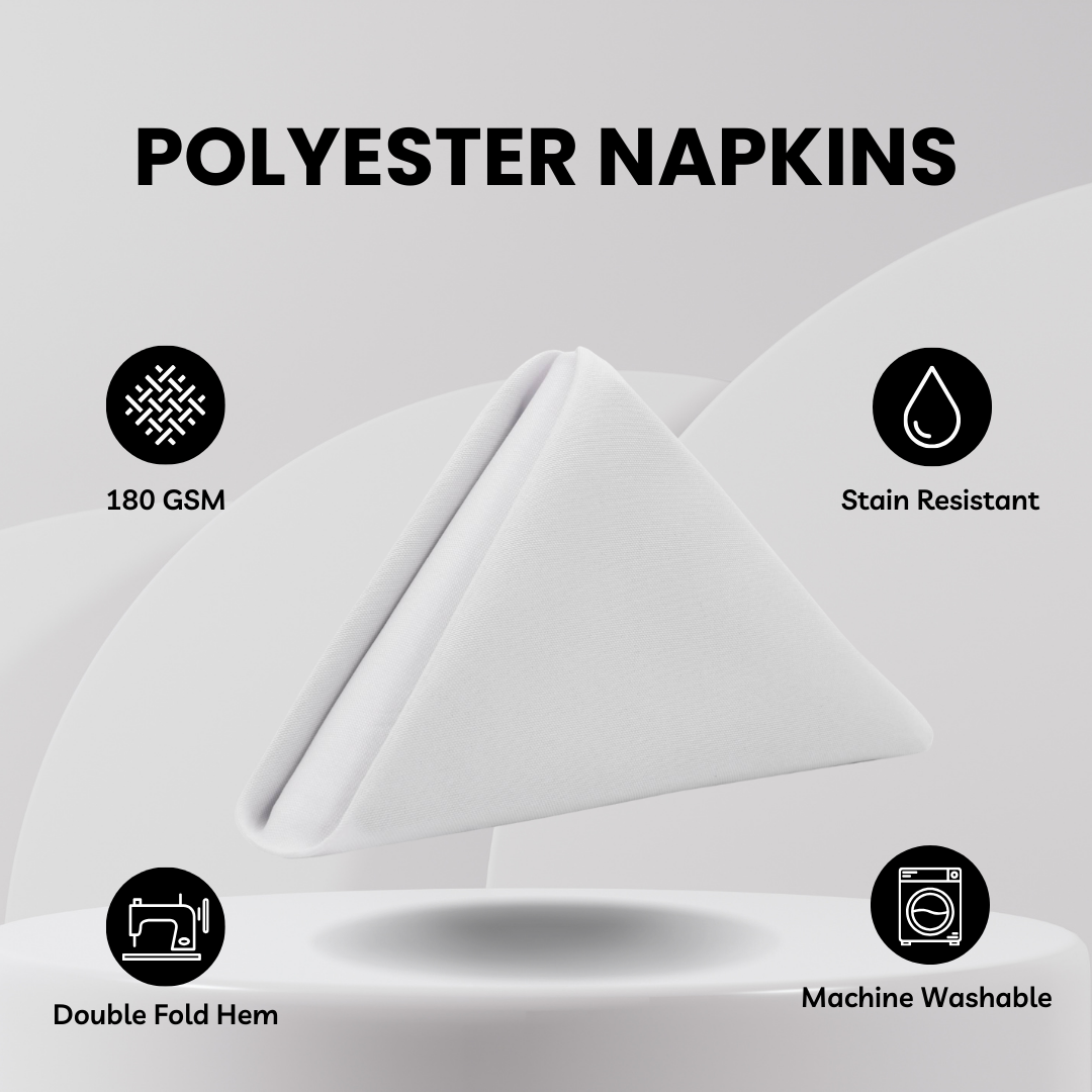 I ordered these napkins along with tablecloths for my daughters wedding. They were less expensive than renting them. The polyester fabric is superior and they look amazing. The shipment came nicely packaged with each piece enclosed in clear plastic and labeled with the dimensions. I highly recommend this product and company.