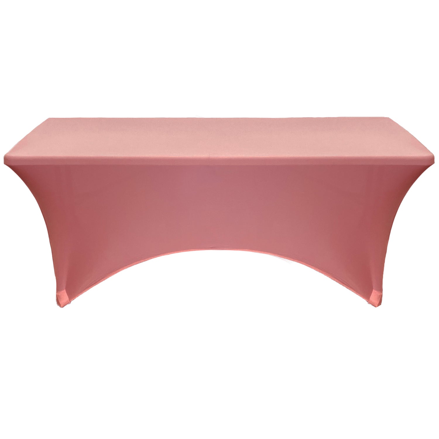 Made from high-quality four-way stretch spandex material, our coral stretch spandex 6 ft rectangular table covers exemplify modern sophistication and luxurious elegance and are designed to fit 6 ft or 72" rectangular tables with 30" height at weddings, casinos, hotels, restaurants, and other special events. Coral spandex tablecloths from Bridal Tablecloths have deep canvas foot pockets, are durable, do not require ironing, and can be laundered countless times. Please note that there are inferior and cheaper versions of this coral spandex tablecloth available in the market, ours is crafted from a hotel and restaurant quality spandex type of material.