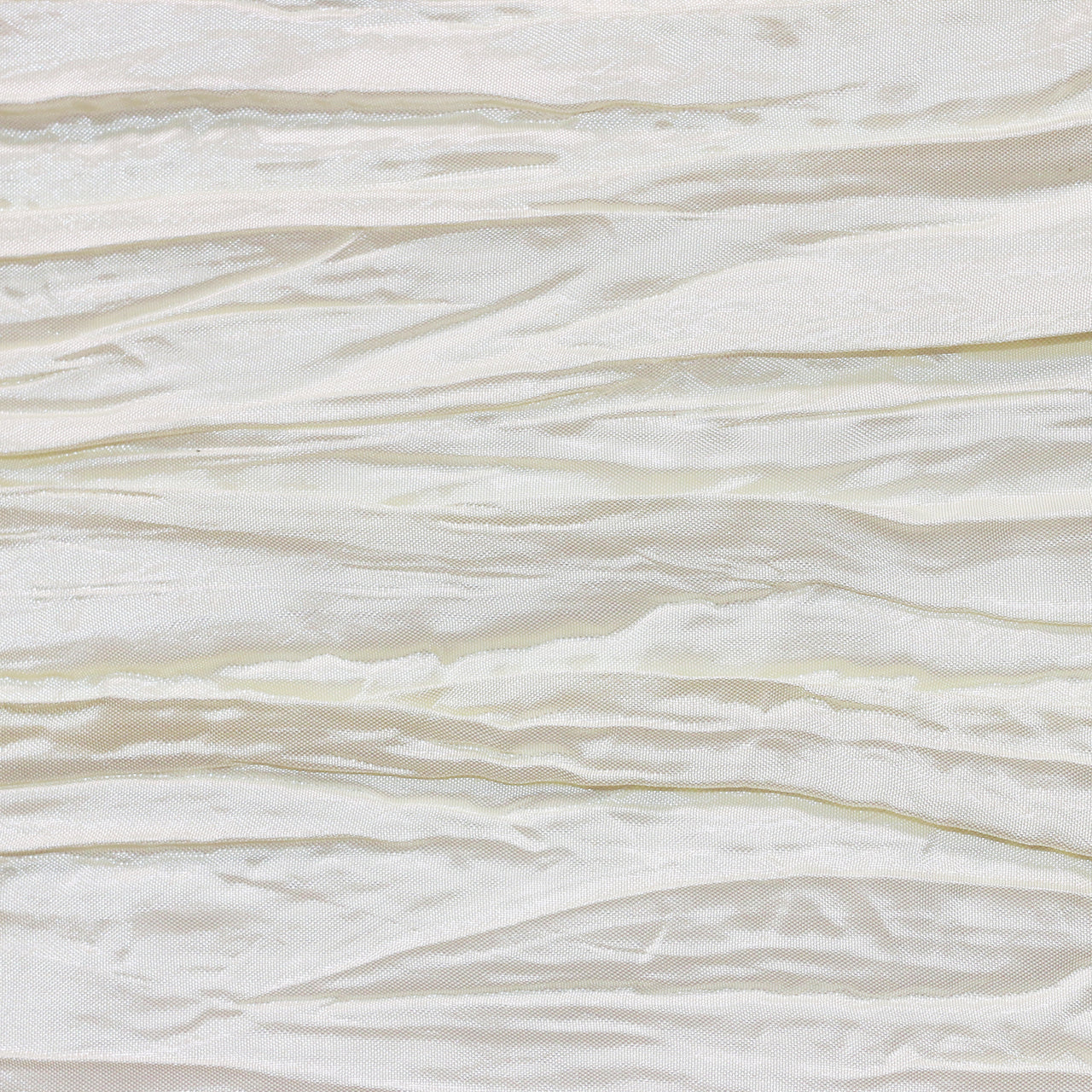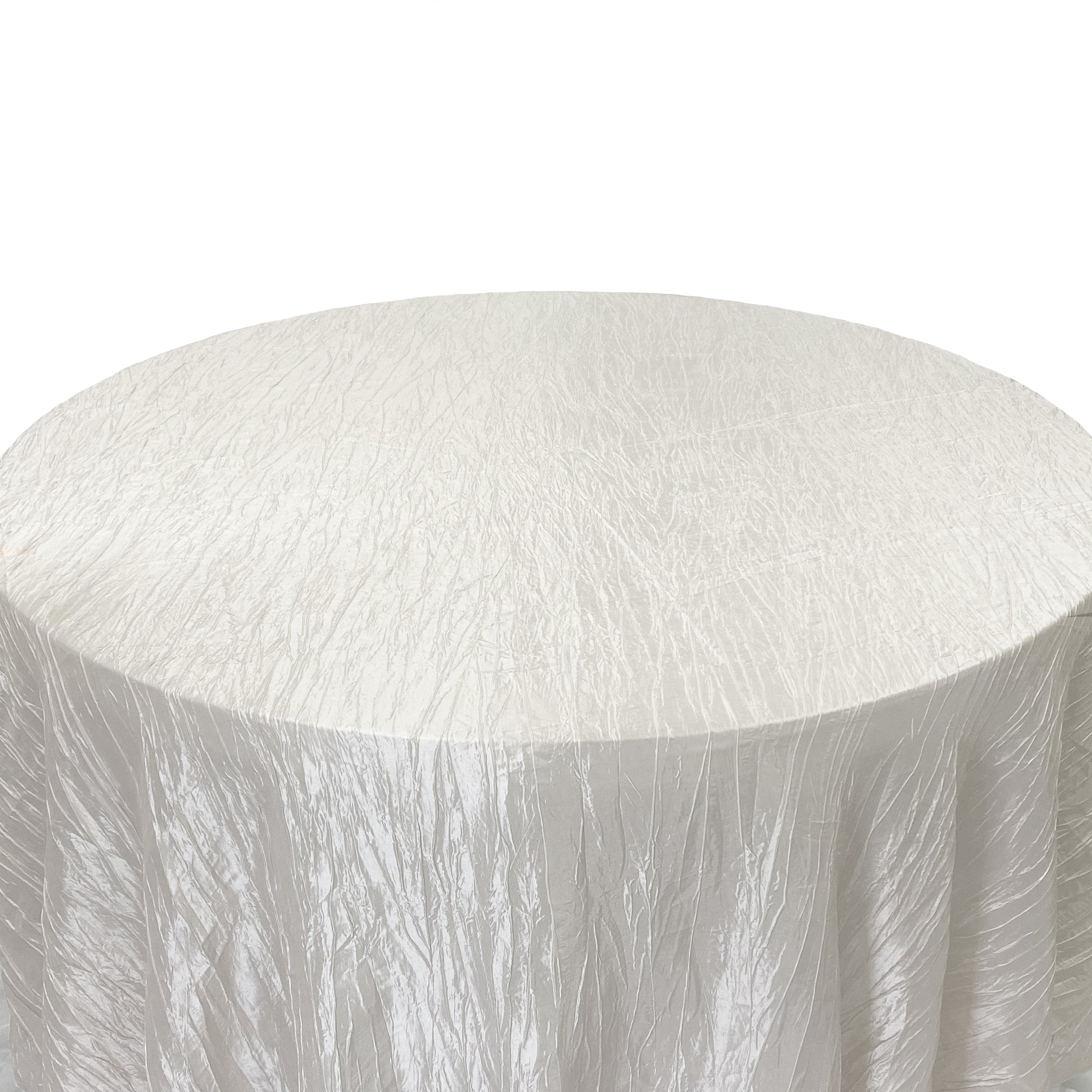 Elegant and classy. This is how most people would describe our 108 inch Crinkle Taffeta Round Tablecloths in Ivory. If you are styling a wedding or special event that calls for exquisite designs and modern elegance, our Ivory crinkle taffeta table linen for wedding reception tables will definitely fit the bill. When used to complement your wedding chair covers or as a wedding reception hall accent, the textured look of crushed or crinkle taffeta will definitely help make a stylish statement. This taffeta tablecloth is versatile and can be used to fully drape a 48 inch round table or 24 in drop on a 60 inch/5 ft. round table or as a round overlay on a 72 inch/ 6 ft. round table.