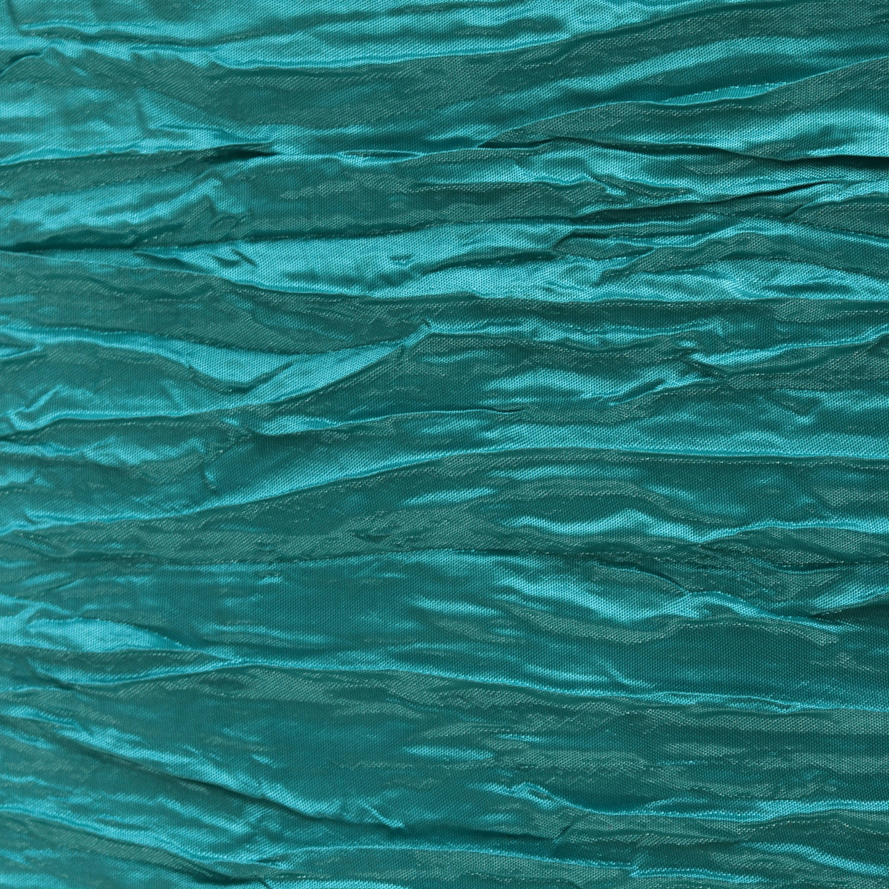 Unique, classy and sophisticated. This is how most people would describe our 90 x 132 inch Crinkle Taffeta Rectangular Tablecloths in teal. If you are styling a wedding or special event that calls for exquisite designs and modern elegance, our teal crinkle taffeta table linen for wedding reception tables will definitely fit the bill. When used to complement your wedding chair covers or as a wedding reception hall accent, the textured look of crushed or crinkle teal taffeta will definitely help make a stylish statement (TIP: You can go easy on other wedding decor). This taffeta tablecloth that fits 72 inch rectangle tables or 6 ft rectangular table sizes is one of our specialty linens here at Bridal Tablecloths.