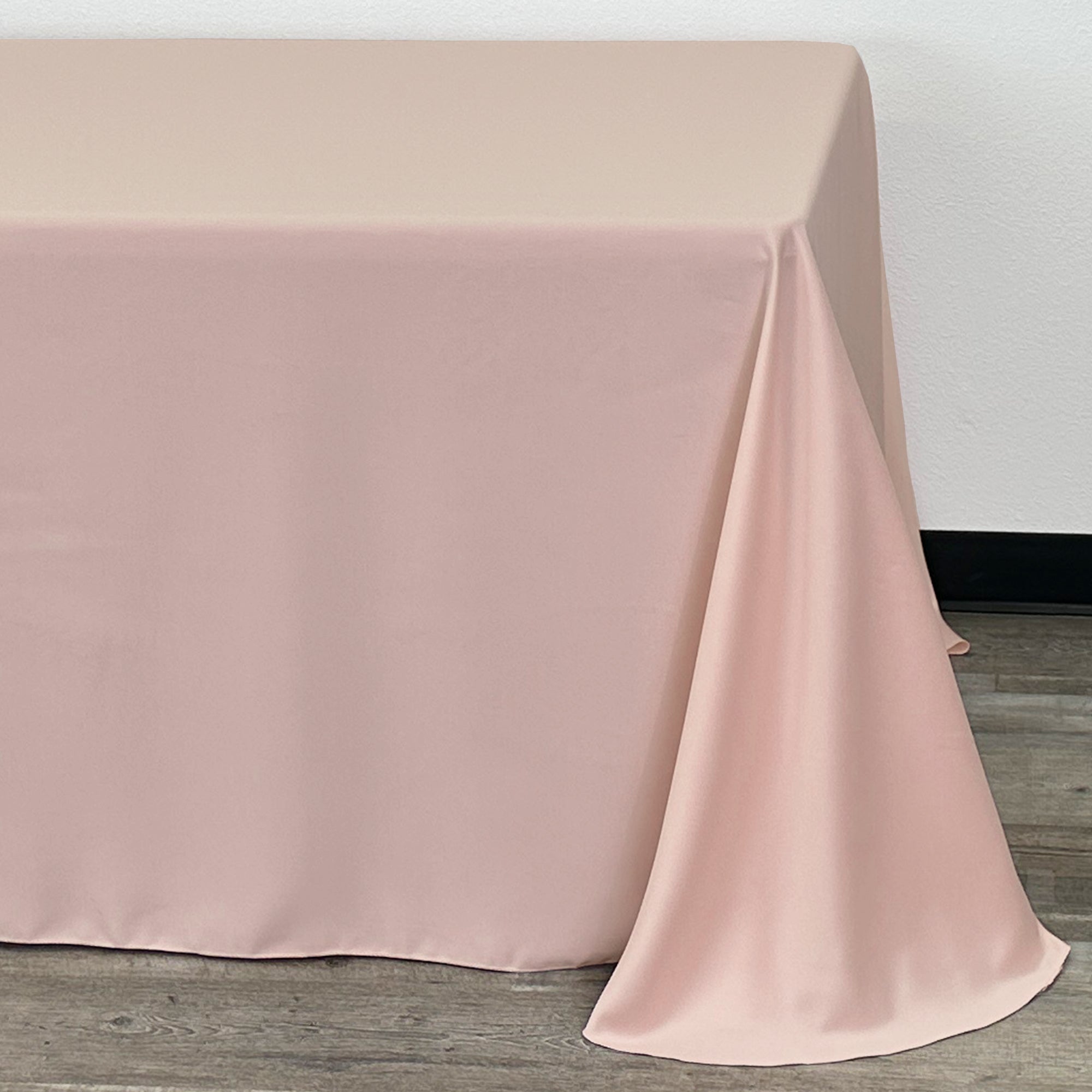 Cloth napkins and linen tablecloths. These are the focal points of any luxurious event or elegant wedding reception table. Aside from its main use of being a table linen, our 90 x 156 inch l'amour rectangular tablecloth in blush will definitely help you put together a cohesive, wedding design--as far as creating color themed weddings is concerned. These blush tablecloths feature the elegant, matte appearance that lamour fabrics are known for. Use them as a key component of your style palette, just like what event planners would do. Implement style and hue elements by using cloth napkins instead of other wedding decor. As part of our commitment to the wedding industry, we only sell high quality blush lamour tablecloths at affordable, wholesale prices.