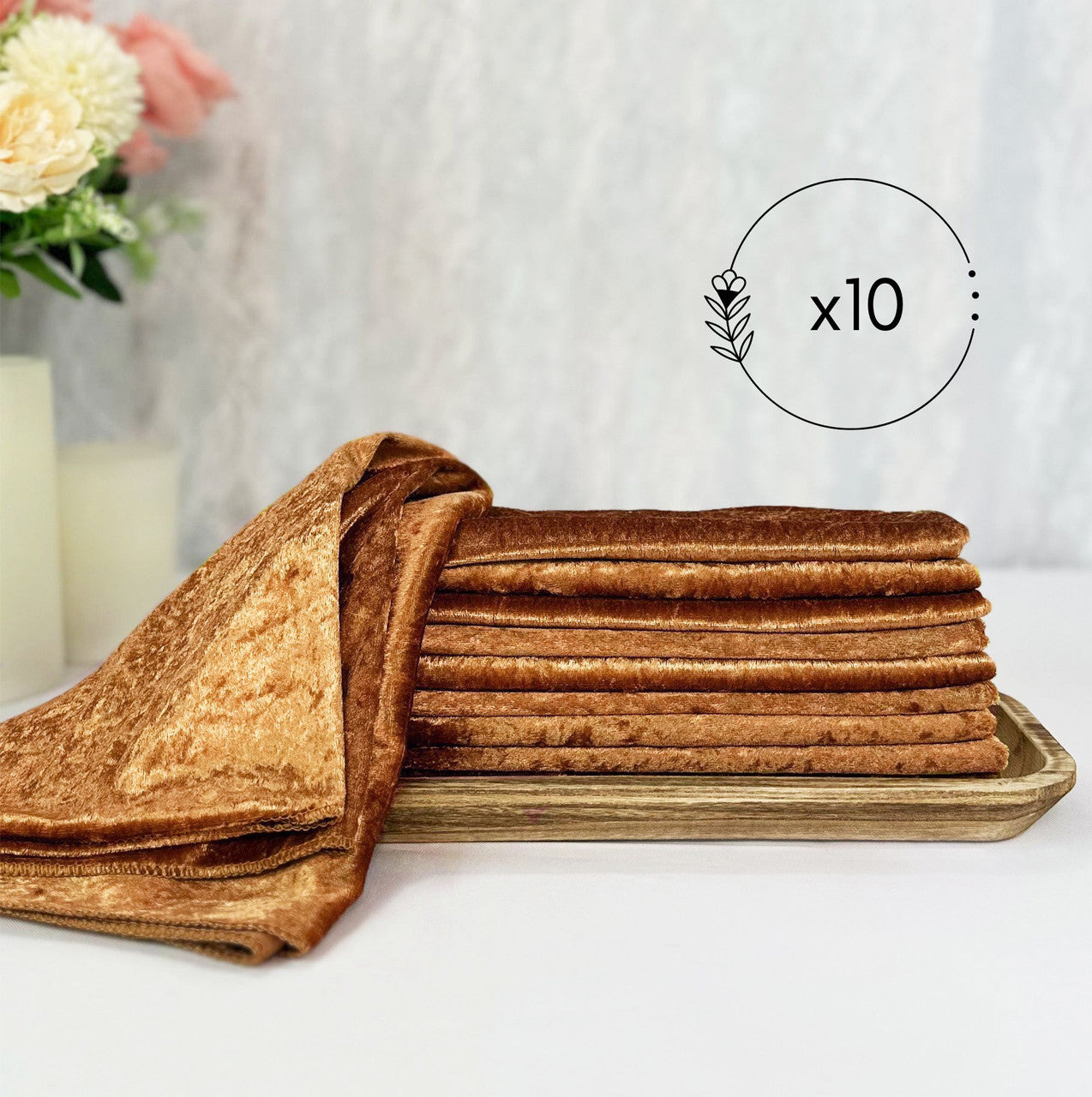 Revamp your table décor with the stunning beauty of our terracottacrushed velvet napkins. The velvety texture and dazzling color combination provide a euphoric and romantic event setting. Aside from their main use of being a cloth napkin, our silky soft 20" x 20" crushed velvet napkins in terracotta will undeniably help assemble a cohesive, event table design. Our crushed velvet napkins are made from high-quality 190 GSM velvet fabric, are seamless and feature a serged finish allowing you to assemble a phenomenal table design. Utilize them as a key component of your style palette or perfectly pair them with our collection of crushed velvet tablecloths, table runners, drapes and napkin rings.