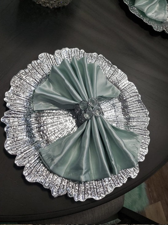 Linen tablecloths and napkins. These are the focal points of any luxurious event or elegant wedding reception table. Aside from its main use of being a cloth napkin, our 20-inch x 20-inch satin napkin in Tiffany will definitely help you put together a cohesive, wedding design--as far as creating color-themed weddings is concerned. Use them as a key component of your style palette, just like what event planners would do. Implement style and hue elements by using cloth napkins instead of other wedding decors. As part of our commitment to the wedding industry, we only sell high-quality napkins at affordable, wholesale prices.