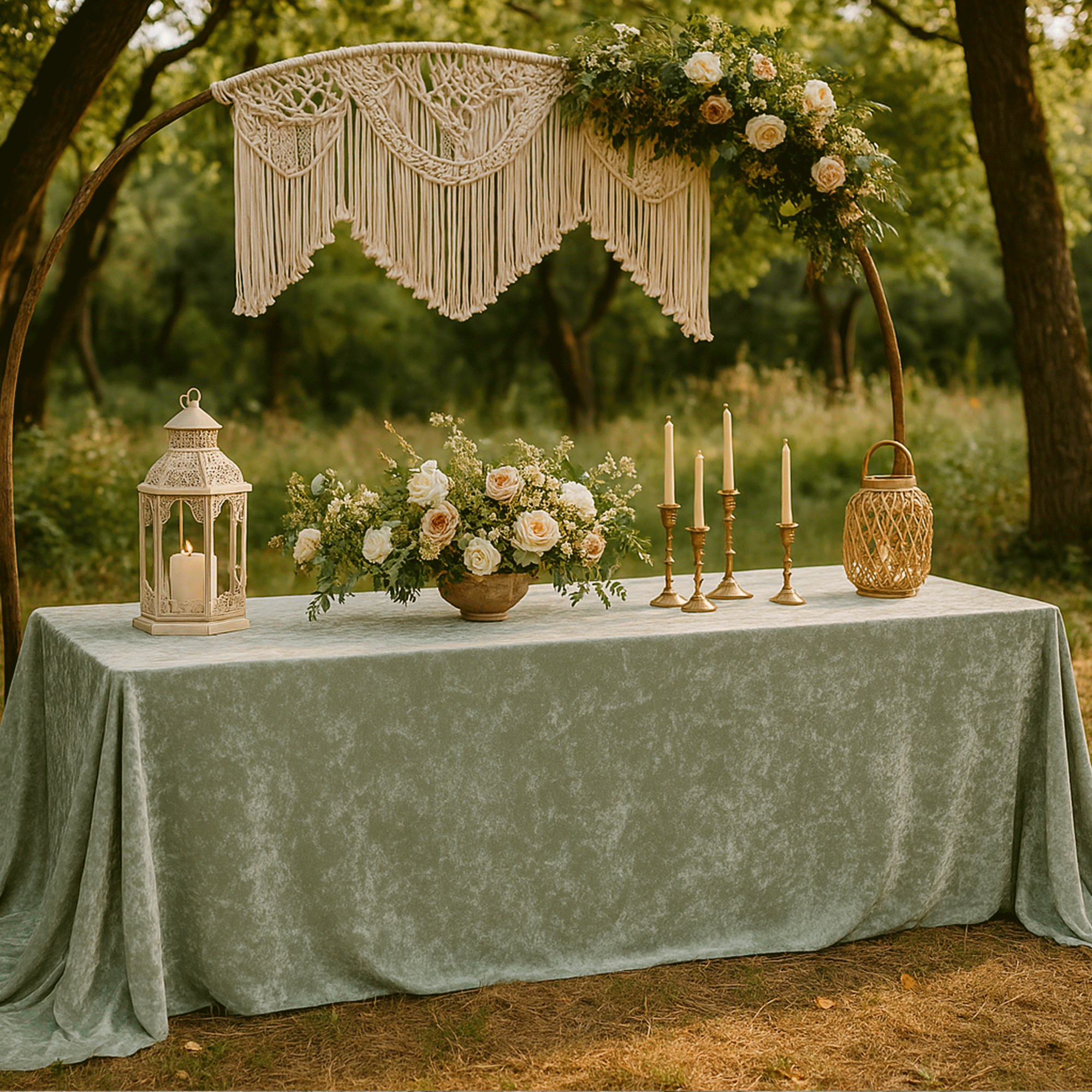 90 x 132 Inch Rectangular Crushed Velvet Tablecloth Sage