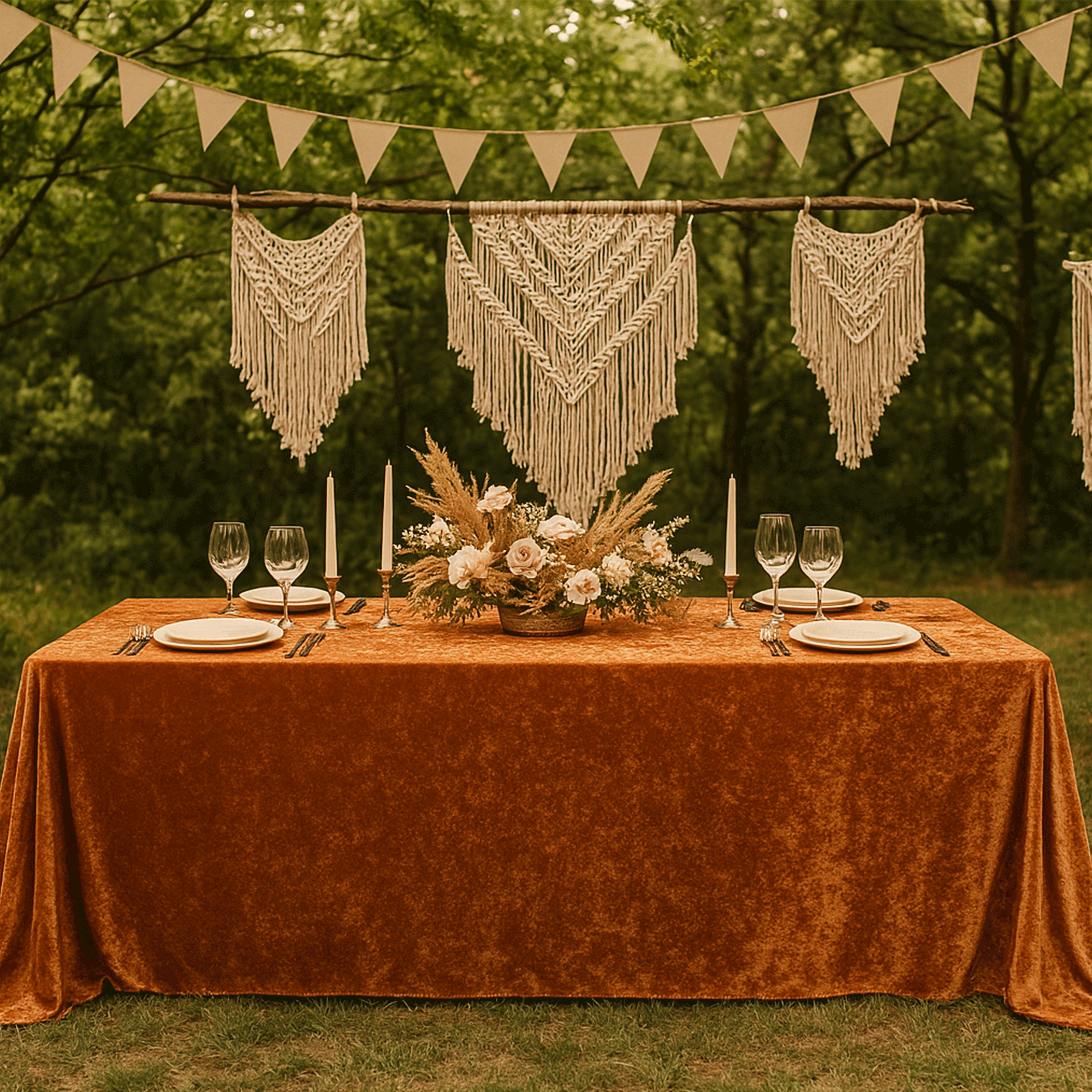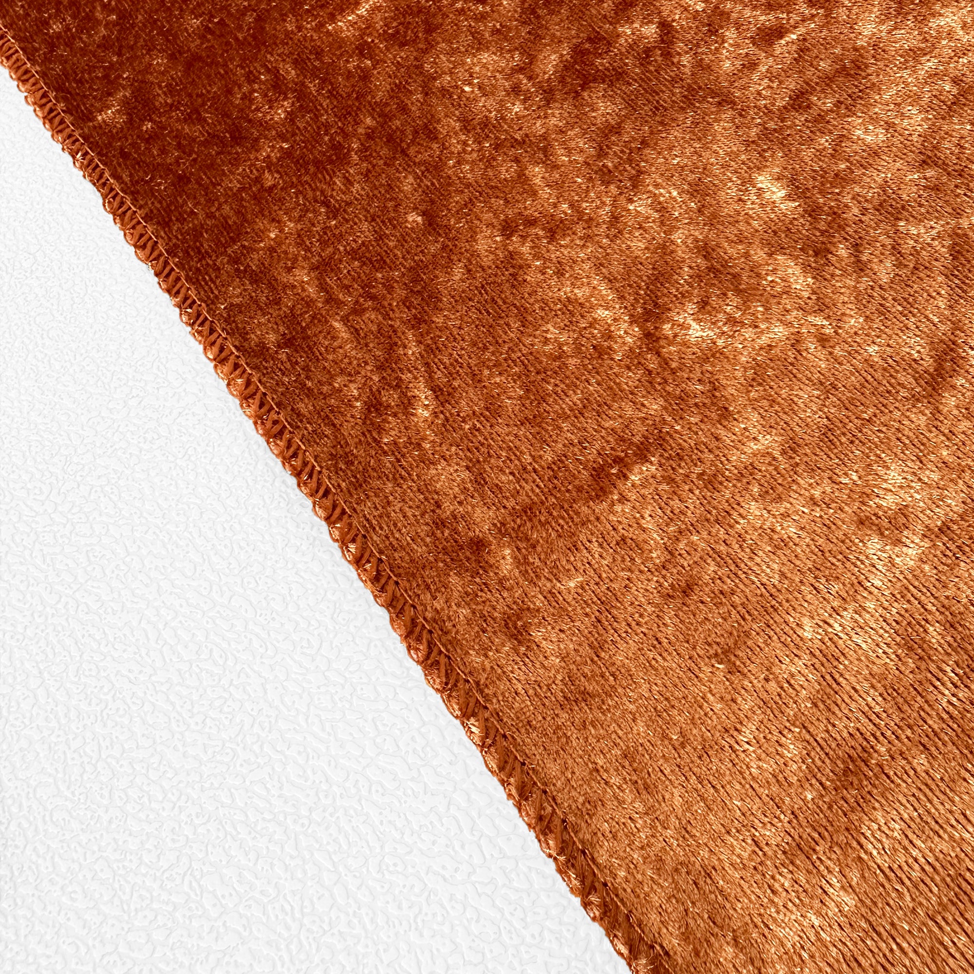 Revamp your event décor with the stunning beauty of our Terracotta Crushed Velvet 90 x 132 inch Rectangular Tablecloths. The velvety texture and dazzling color combination provide a euphoric and romantic event setting. Crafted from high-quality 190 GSM crushed velvet fabric also known as panne velvet, our 90 x 132 inch rectangular crushed velvet tablecloths in terracotta are designed to provide a floor-length drop on a standard 6 foot rectangular table with a 30-inch height. Additionally, each tablecloth is seamless and features a serged finish setting the standard of sophistication further magnifying your event.