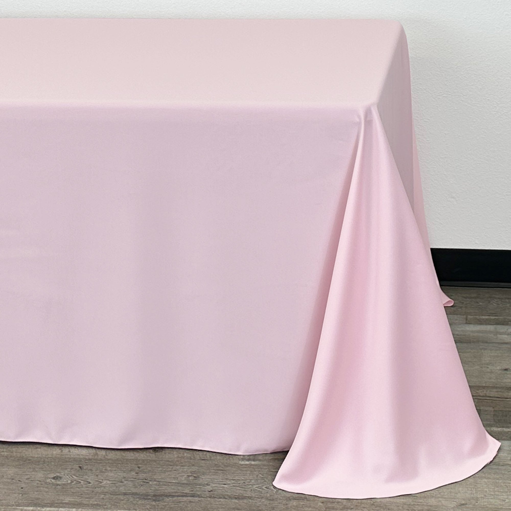 Cloth napkins and linen tablecloths. These are the focal points of any luxurious event or elegant wedding reception table. Aside from its main use of being a table linen, our 90 x 132 inch l'amour rectangular tablecloth in pink will definitely help you put together a cohesive, wedding design--as far as creating color themed weddings is concerned. These pink tablecloths feature the elegant, matte appearance that lamour fabrics are known for. Use them as a key component of your style palette, just like what event planners would do. Implement style and hue elements by using cloth napkins instead of other wedding decor. As part of our commitment to the wedding industry, we only sell high quality pink lamour tablecloths at affordable, wholesale prices.