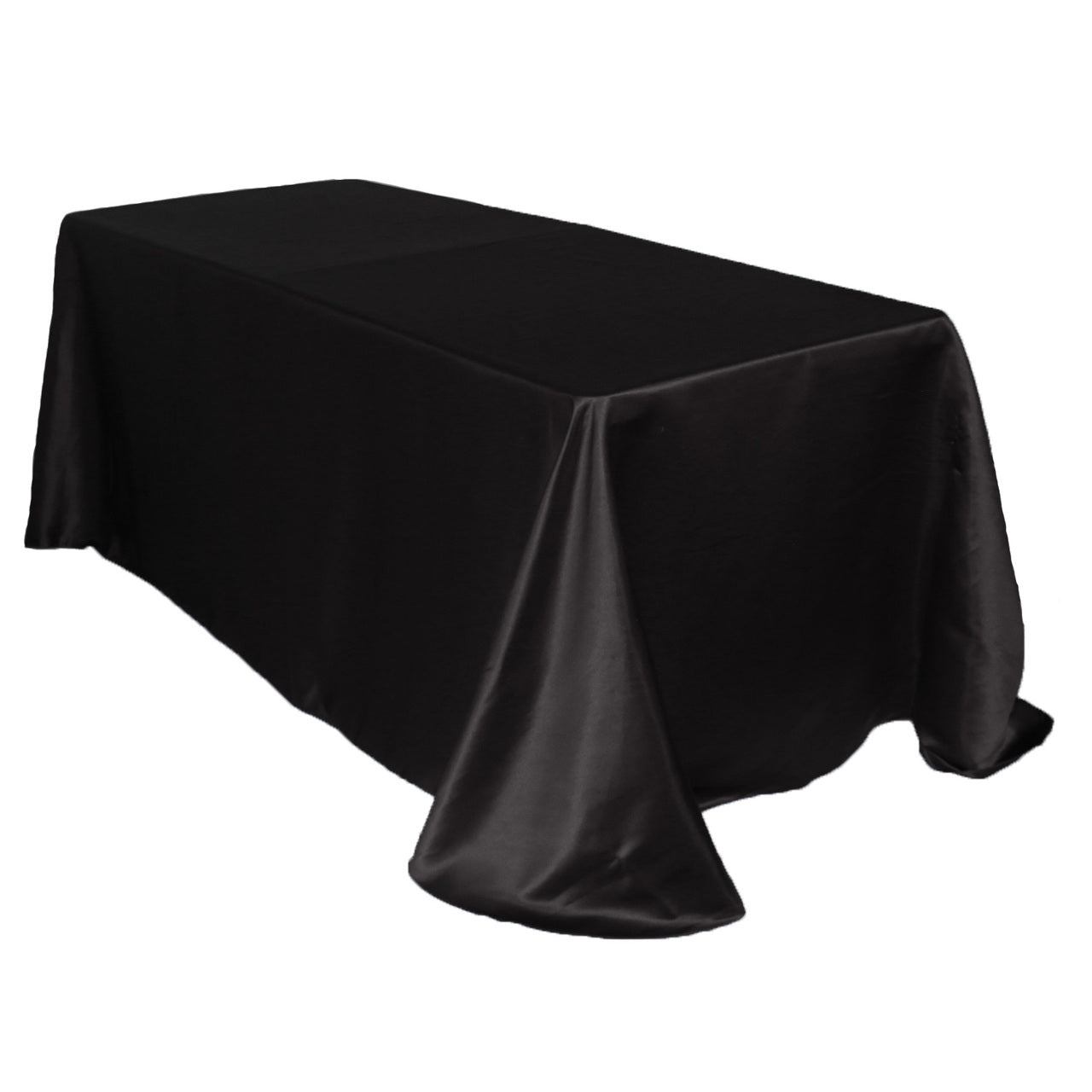 Cloth napkins and linen tablecloths. These are the focal points of any luxurious event or elegant wedding reception table. Aside from its main use of being a table linen, our 90 x 132 inch l'amour rectangular tablecloth in black will definitely help you put together a cohesive, wedding design--as far as creating color themed weddings is concerned. These black tablecloths feature the elegant, matte appearance that lamour fabrics are known for. Use them as a key component of your style palette, just like what event planners would do. Implement style and hue elements by using cloth napkins instead of other wedding decor. As part of our commitment to the wedding industry, we only sell high quality black lamour tablecloths at affordable, wholesale prices.