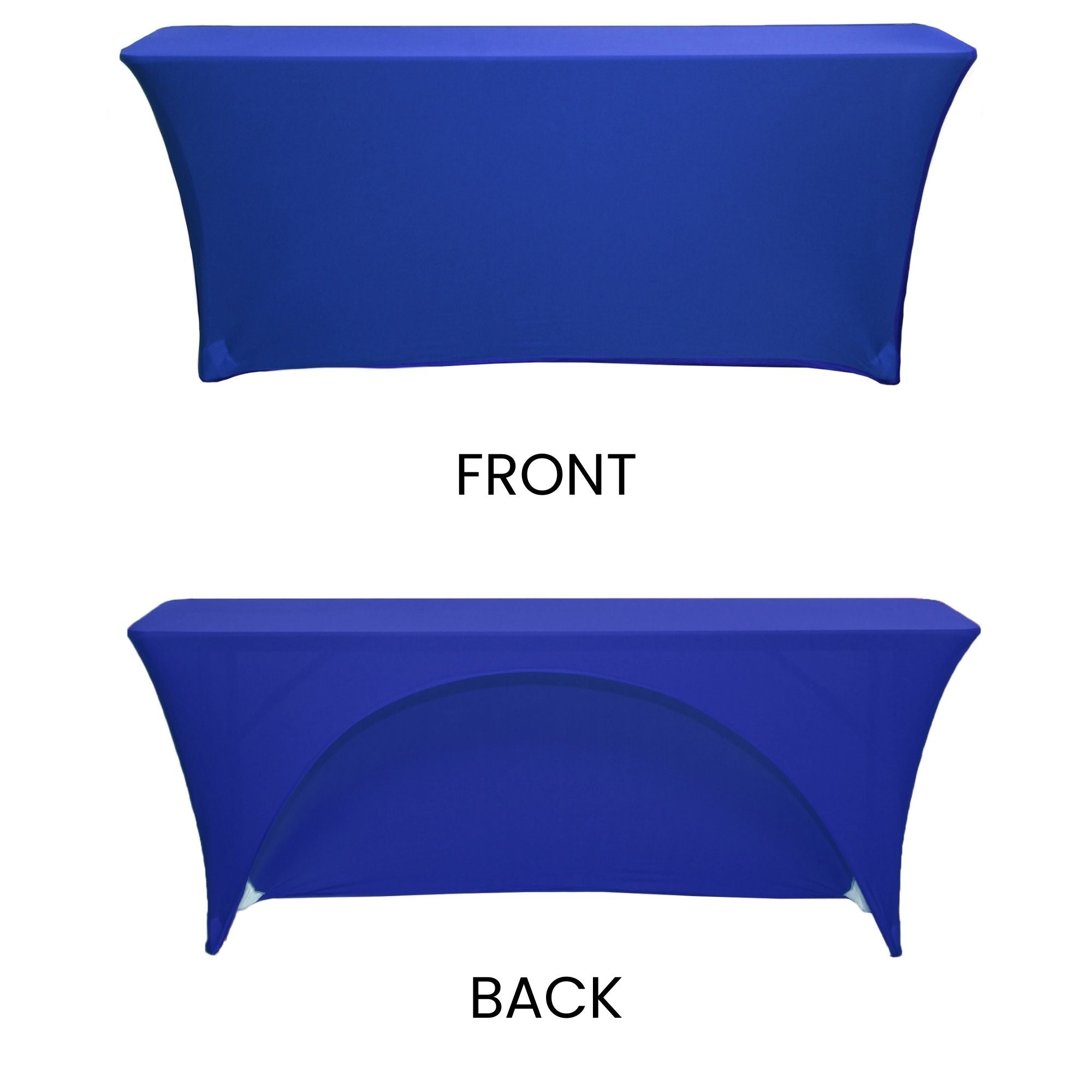 High Quality 6 FT x 18 Inches Rectangular Open-Back Royal Blue Spandex Tablecloths.