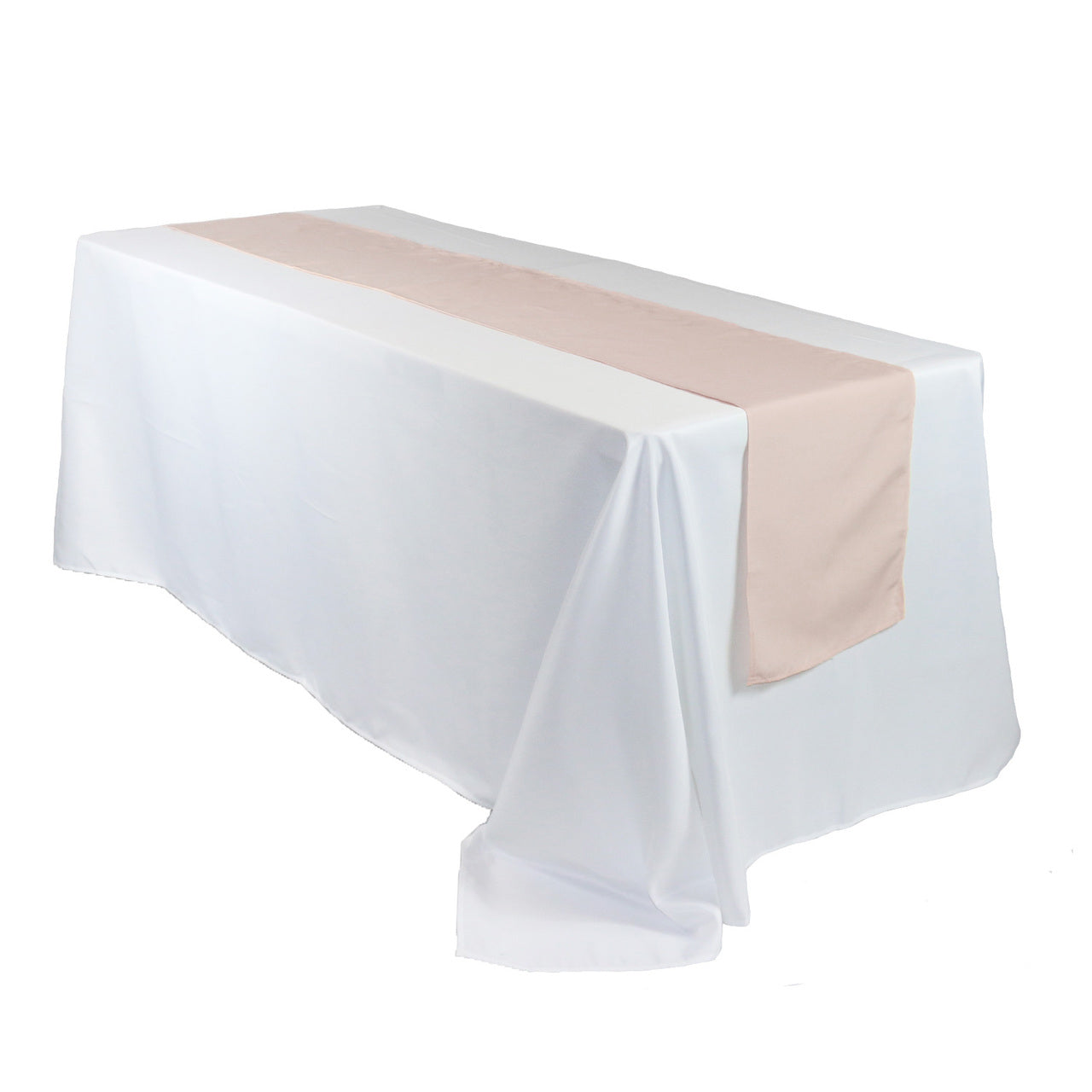 Designed to complement wedding tablecloths, polyester table runners in Blush have always been the go-to reception table accent for wedding planners, event coordinators and fine dining professionals. These 14 x 108 inch Blush table runners feature the matte appearance and subtle elegance of Blush polyester. Each Blush polyester runner is luxurious to the touch, wide enough for wedding reception tables, and adds the perfect hint of glam and color.