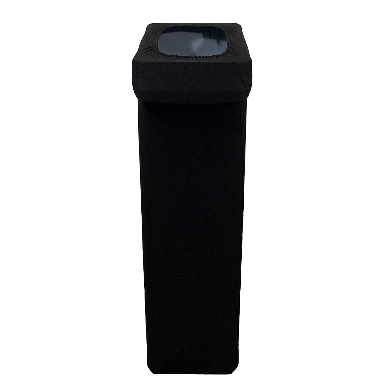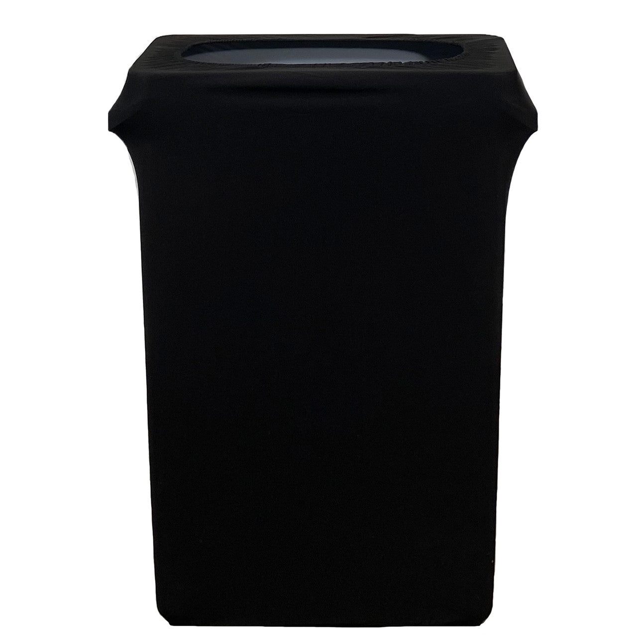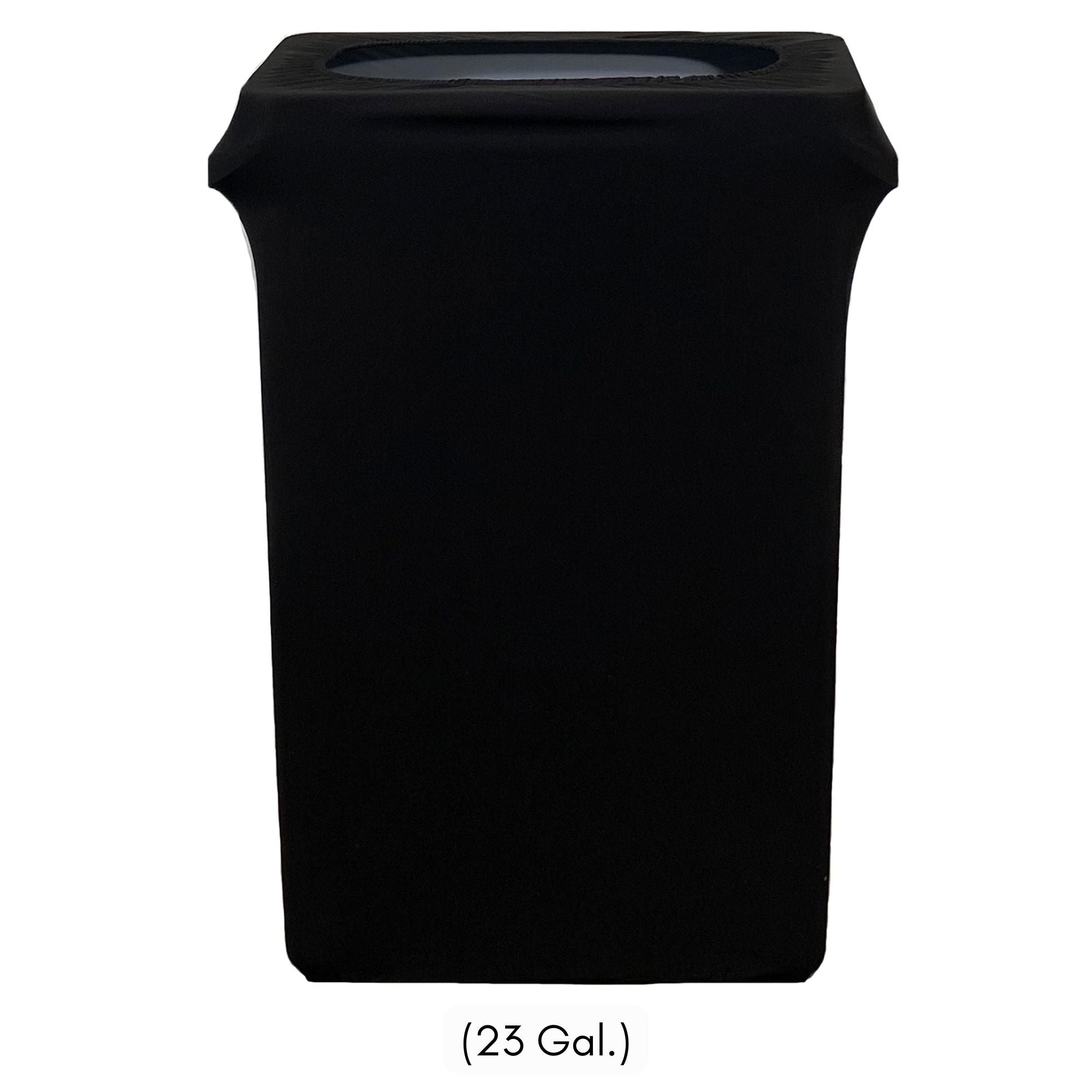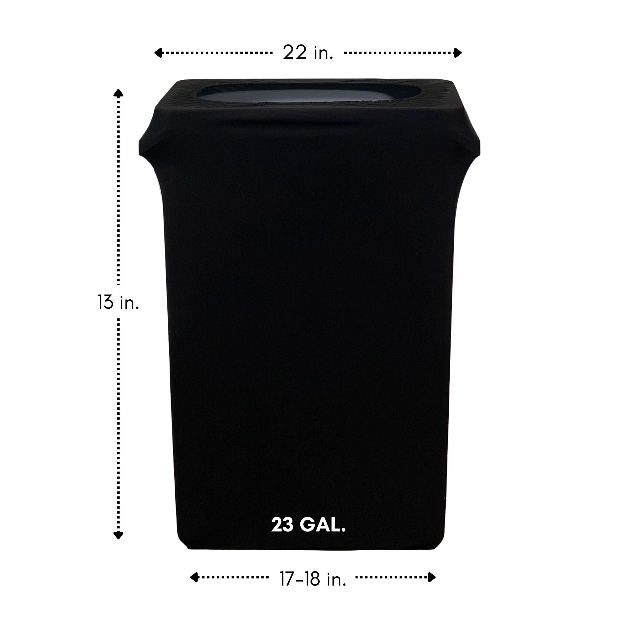 The addition of our premium Spandex 23 Gallon Slim Jim Narrow Trash Can Covers in black will provide supplemental elegance and sophistication to your office, home, and a multitude of events. They are designed to complement our wide array of spandex products such as chair covers, table covers, and bands. The simple, yet durable design will quickly transform an old and outdated trash can into a stylish and appealing basket bound to receive plenty of compliments from all your guests or event attendees.