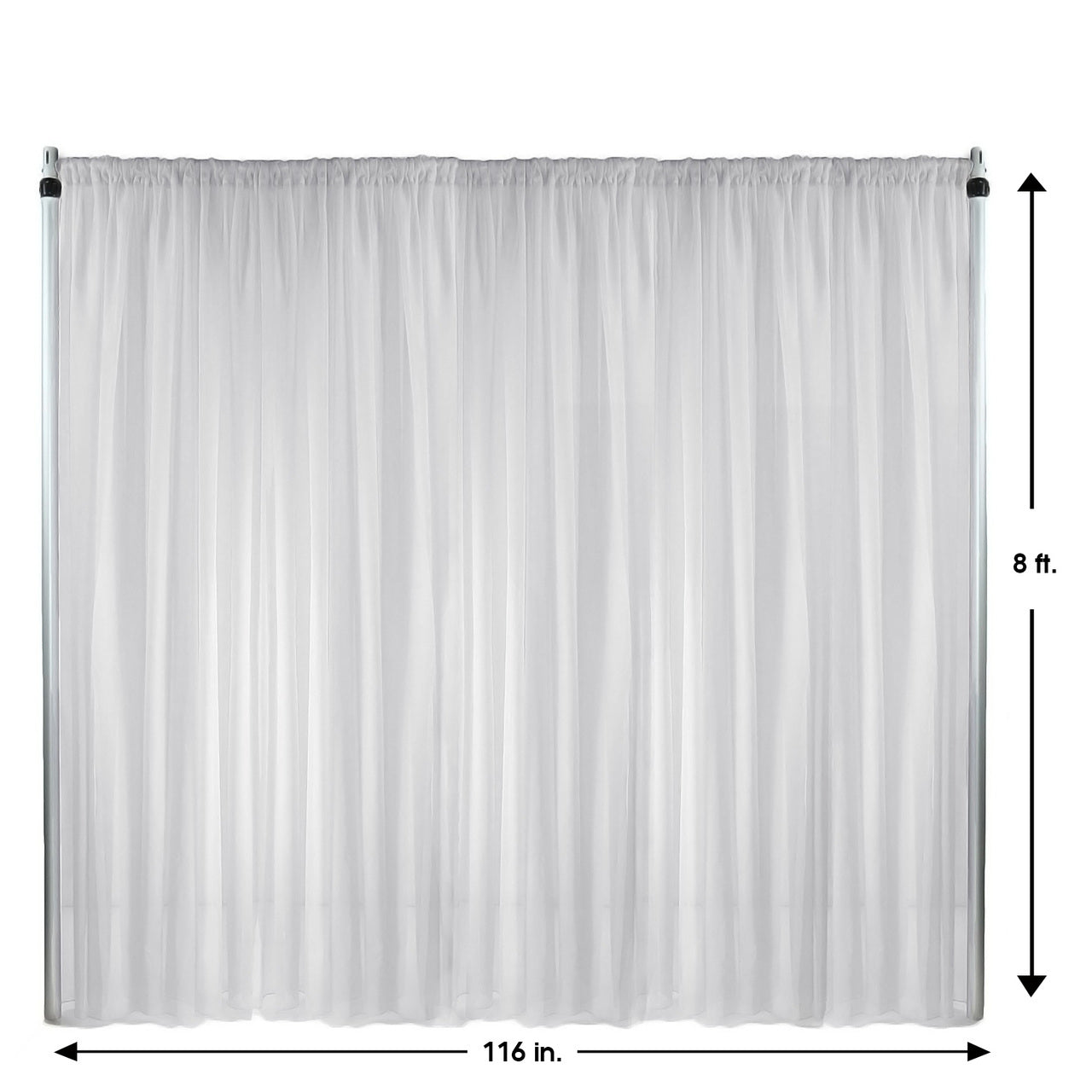Voile Sheer Drape/Backdrop 8 ft x 116 Inches White is made from high-quality voile material. These multipurpose drapes can be used to add allure and supplemental beauty for weddings, trade shows, birthdays, and any event that requires the coverage of walls or ceilings. Why rent drapes if you can purchase them brand new for the cost of a rental? These premium backdrops are a great addition to an event planner’s inventory, and also, for DIY brides. These Black drapes/backdrops will exquisitely compliment your decor and create a beautiful setting for your special day.
