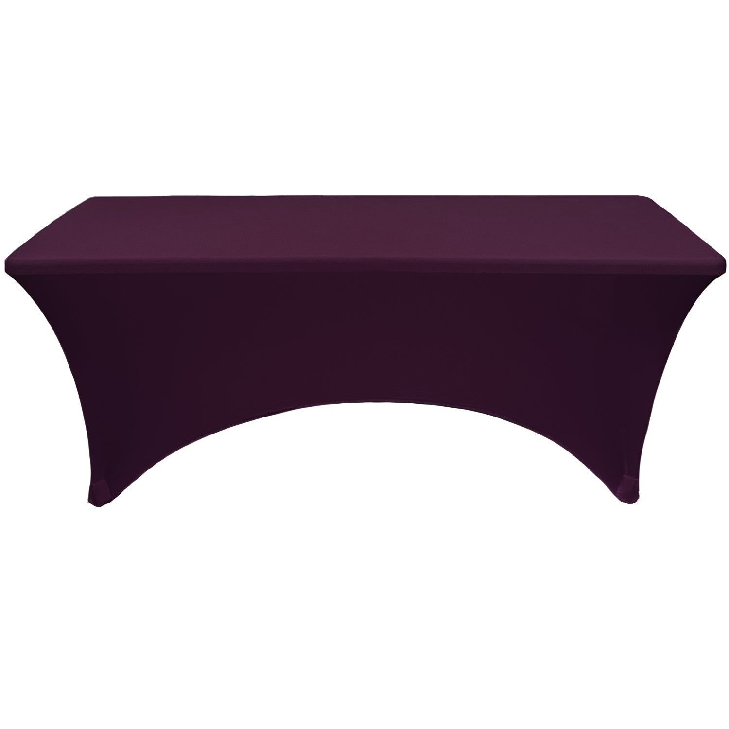 Made from high-quality four-way stretch spandex material, our Eggplant stretch spandex 6 ft rectangular table covers exemplify modern sophistication and luxurious elegance and are designed to fit 6 ft or 72" rectangular tables with 30" height at weddings, casinos, hotels, restaurants, and other special events. Eggplant spandex tablecloths from Bridal Tablecloths have deep canvas foot pockets, are durable, do not require ironing, and can be laundered countless times. Please note that there are inferior and cheaper versions of this Eggplant spandex tablecloth available in the market, ours is crafted from a hotel and restaurant quality spandex type of material.