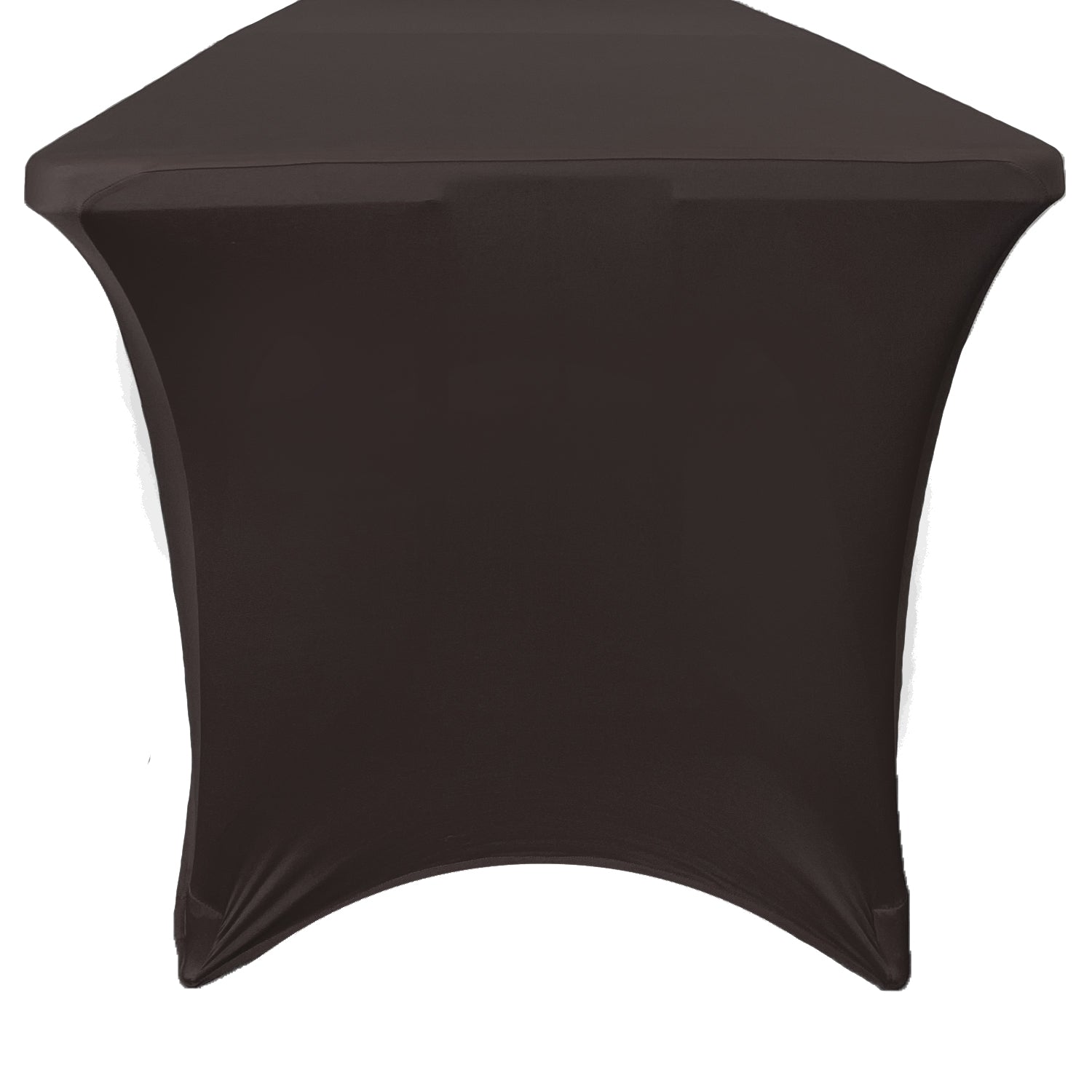 Made from high-quality four-way stretch spandex material, our black stretch spandex 8 ft rectangular table covers exemplify modern sophistication and luxurious elegance and are designed to fit 8 ft or 96" rectangular tables with 30" height at weddings, casinos, hotels, restaurants and other special events. Black spandex tablecloths from Bridal Tablecloths have deep canvas foot pockets, are durable, do not require ironing and can be laundered countless times. Please note that there are inferior and cheaper versions of this black spandex tablecloth available in the market, ours is crafted from a hotel and restaurant quality spandex type of material.