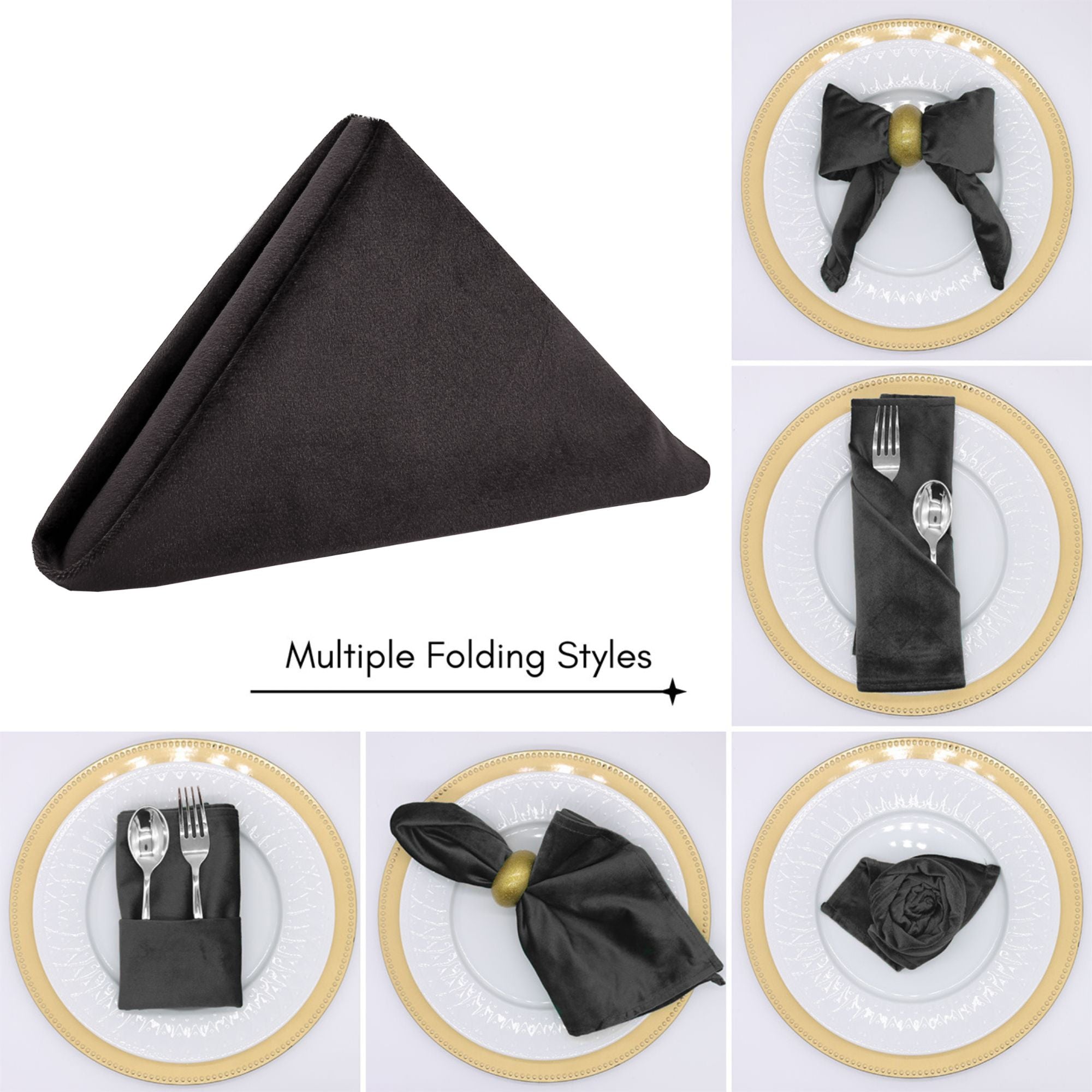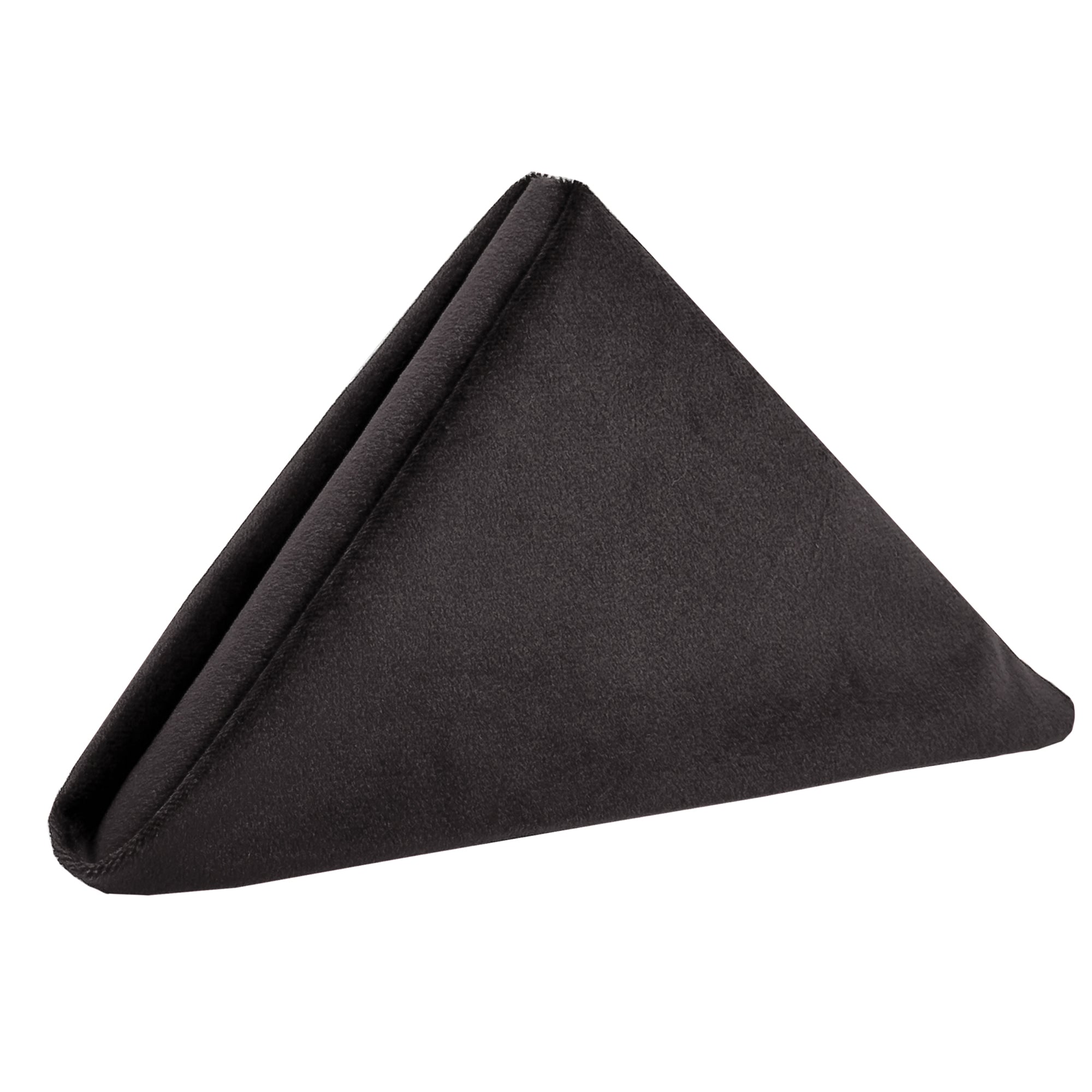 Give your table décor the treatment it deserves with our Velvet Napkins – Black. Aside from their main use of being a cloth napkin, our silky soft 20" x 20" velvet napkins in black are constructed from high-quality 275 GSM lush velvet fabric thick enough to uphold any napkin folding design. In addition to the premium velvet fabric, our velvet napkins feature a double-fold hem and are seamless allowing you to assemble a polished and luxurious table design. Utilize them as a key component of your style palette or perfectly pair them with our collection of velvet tablecloths and table runners. If you're looking for elegant wedding napkins, you can't go wrong with black velvet napkins as decorative linen napkins.