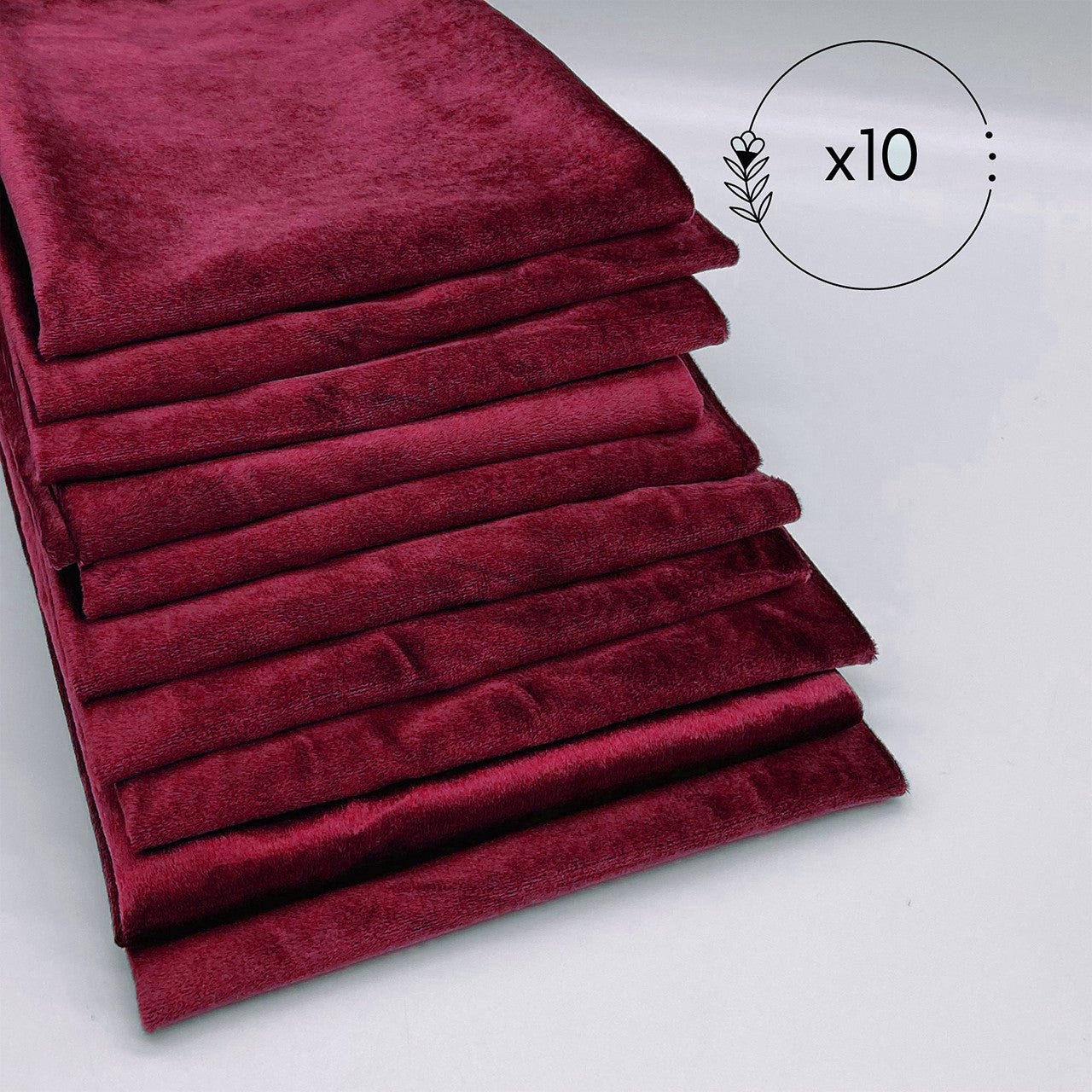 Give your table décor the treatment it deserves with our Velvet Napkins – Burgundy. Aside from their main use of being a cloth napkin, our silky soft 20" x 20" velvet napkins in burgundy are constructed from high-quality 275 GSM lush velvet fabric thick enough to uphold any napkin folding design. In addition to the premium velvet fabric, our velvet napkins feature a double fold hem and are seamless allowing you to assemble a polished and luxurious table design. Utilize them as a key component of your style palette or perfectly pair them with our collection of velvet tablecloths and table runners. If you're looking for elegant wedding napkins, you can't go wrong with burgundy velvet napkins as decorative linen napkins.