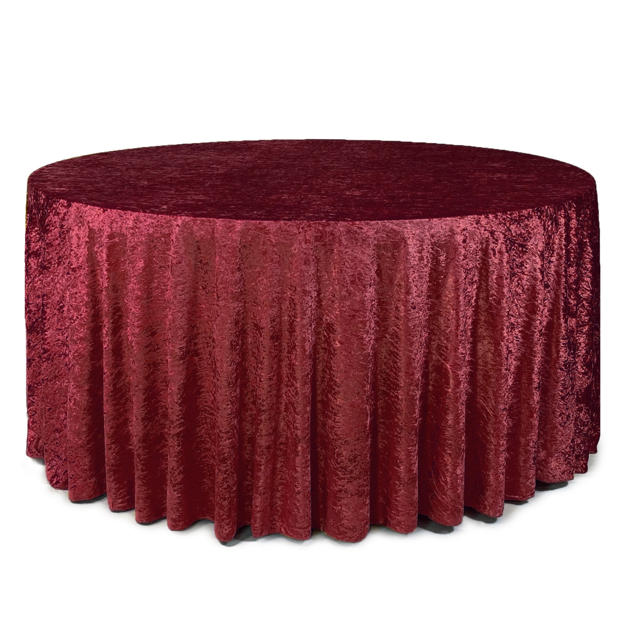 132 Inch Round Crushed Velvet Tablecloth Burgundy - Bridal Tablecloth