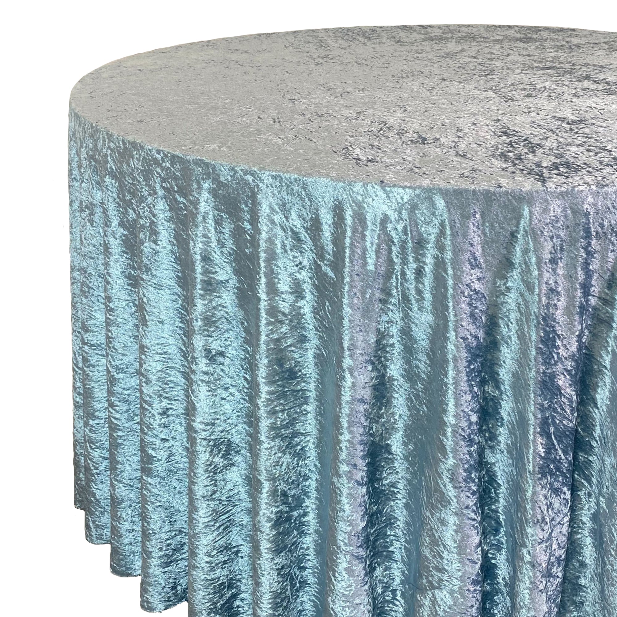 132 Inch Round Crushed Velvet Tablecloth Dusty Blue - Bridal Tablecloth