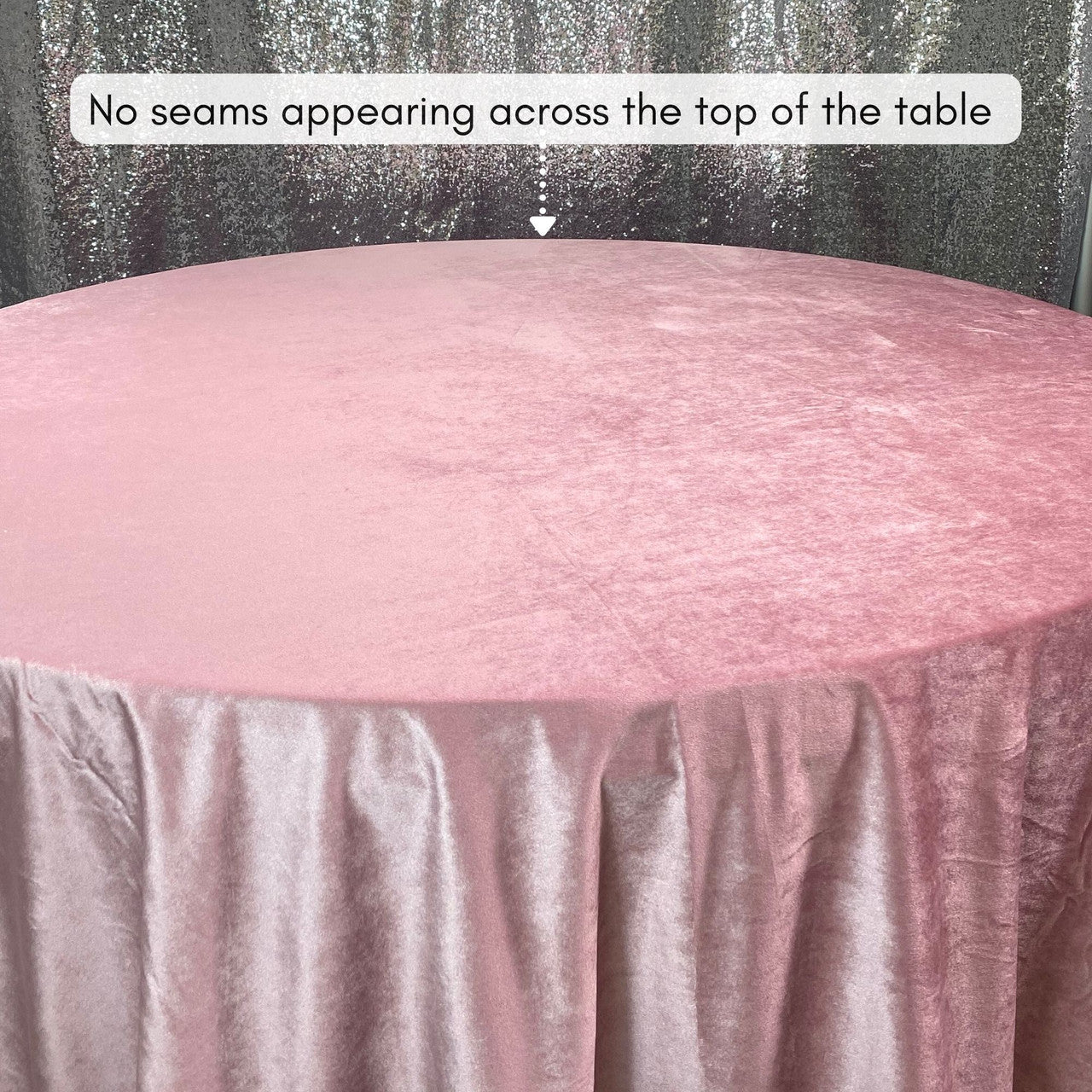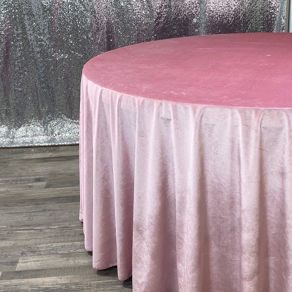 Experience the lap of luxury with the majestic look and feel of our 132 in. Round Velvet Tablecloths - Dusty Rose. This premium velvet tablecloth provides the ultimate level of elegance that captures the essence of pure royalty. We continually strive to provide high-quality rental standard tablecloths and these plain velvet tablecloths are no exception. Our 132 in. Round Velvet Tablecloths in dusty rose are primarily designed to provide a floor-length drop on a standard 6 ft. round banquet table and we have made certain that the round premium velvet tablecloths will not have any seams appearing across the top of the table. Each round tablecloth features a large 110-in wide middle piece ensuring minimal seams to enhance their elegance. Additionally, the serged finish and high-quality 275GSM velvet fabric will set the standard of sophistication further magnifying your event.
