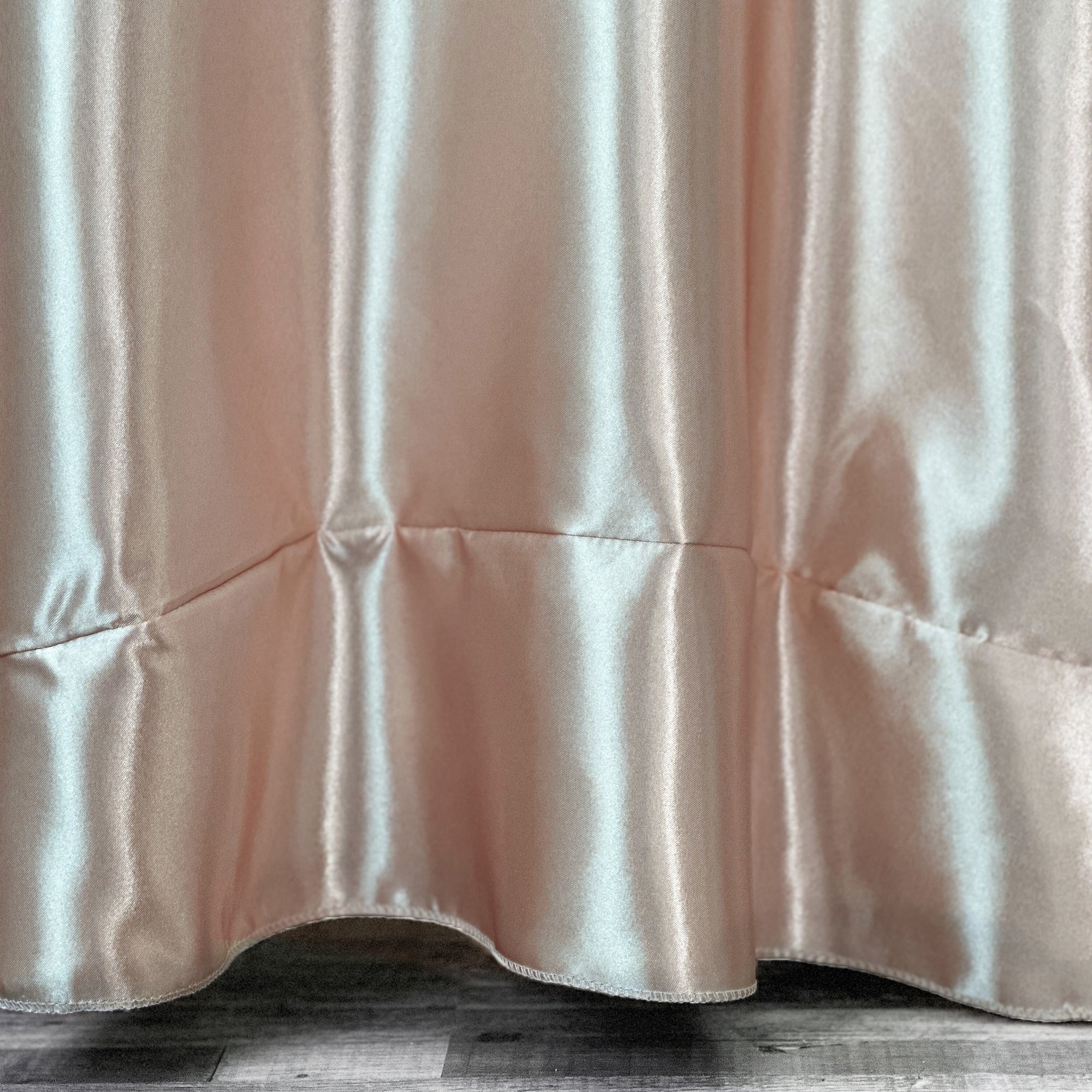 132 inch satin round tablecloths in blush are designed to fully drape the most common larger tables used in banquet halls or wedding reception centers--the 72 inch round table or 6 ft round table with 30 inch height. Meaning, a 132-inch blush round tablecloth will drop all the way to the floor, giving the table an elegant appearance. High quality large round tablecloths are a rare find in the wedding industry and Bridal Tablecloths is dedicated to supply these types of round table linens. Aside from that fact that it's fully drapable, wedding planners and fine-dining professionals prefer to use blush 132 inch rounds over other wedding linen tablecloths due to their soft and silky-satin feel, iridescent and shimmering appearance, durability plus stain and wrinkle resistant properties.