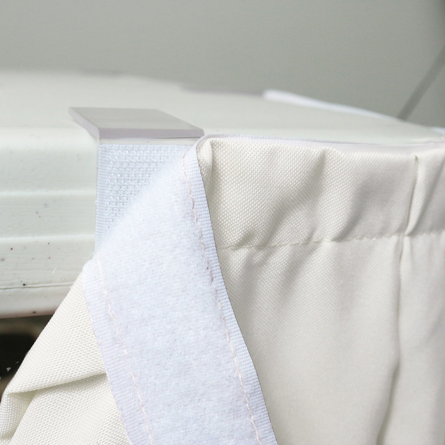 For elegant wedding receptions, for formal banquet affairs, and for trade show events, this 17 ft x 29 inch polyester pleated table skirt in ivory will be a wonderful addition to your table linen presentation. Each ivory table skirt (also known as ivory table skirting) drops 29 inches to the floor, is seamless and features sewn in Velcro strips for ease of attachment to your table skirt clips. Table skirts from Bridal Tablecloths are durable, are made from professional grade polyester and can be washed countless times. Elegant table skirting for display tables, wedding cake tables or gift tables.