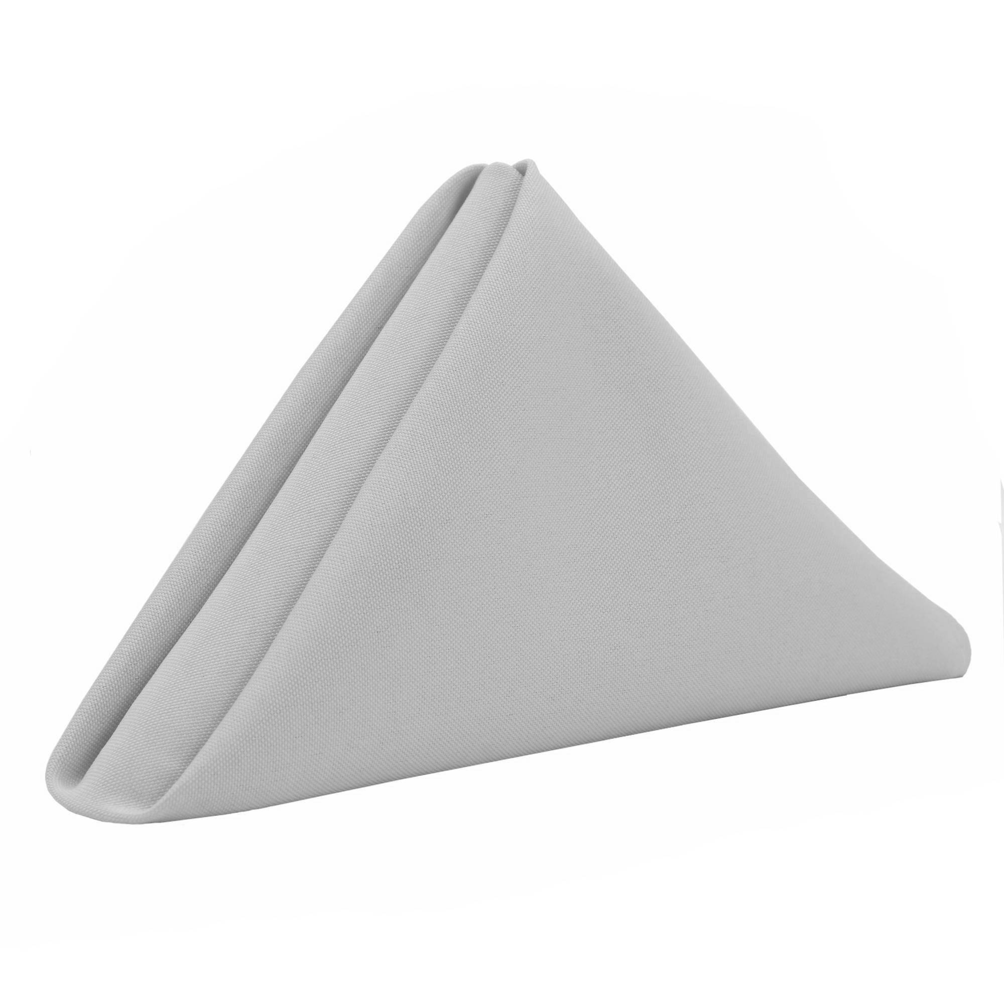 Linen tablecloths and napkins. These are the focal points of any luxurious event or elegant wedding reception table. Aside from its main use of being a cloth napkin, our 20-inch x 20-inch polyester napkin in silver will definitely help you put together a cohesive, wedding design--as far as creating color-themed weddings is concerned. Use them as a key component of your style palette, just like what event planners would do. Implement style and hue elements by using cloth napkins instead of other wedding decor. Perfect for weddings, the color of these napkins is similar to gray (grey) napkins. As part of our commitment to the wedding industry, we only sell high-quality napkins at affordable, wholesale prices.
