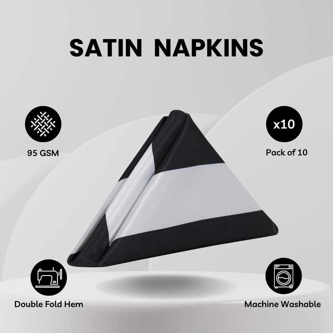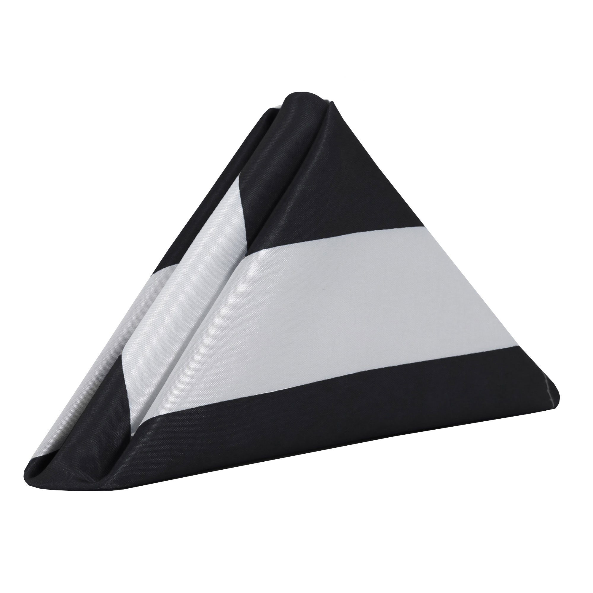 Linen tablecloths and napkins. These are the focal points of any luxurious event or elegant wedding reception table. Aside from its main use of being a cloth napkin, our 20-inch x 20-inch satin napkin in black/white stripe will definitely help you put together a cohesive, wedding design--as far as creating color-themed weddings is concerned. Use them as a key component of your style palette, just like what event planners would do. Implement style and hue elements by using cloth napkins instead of other wedding decor. As part of our commitment to the wedding industry, we only sell high-quality napkins at affordable, wholesale prices.