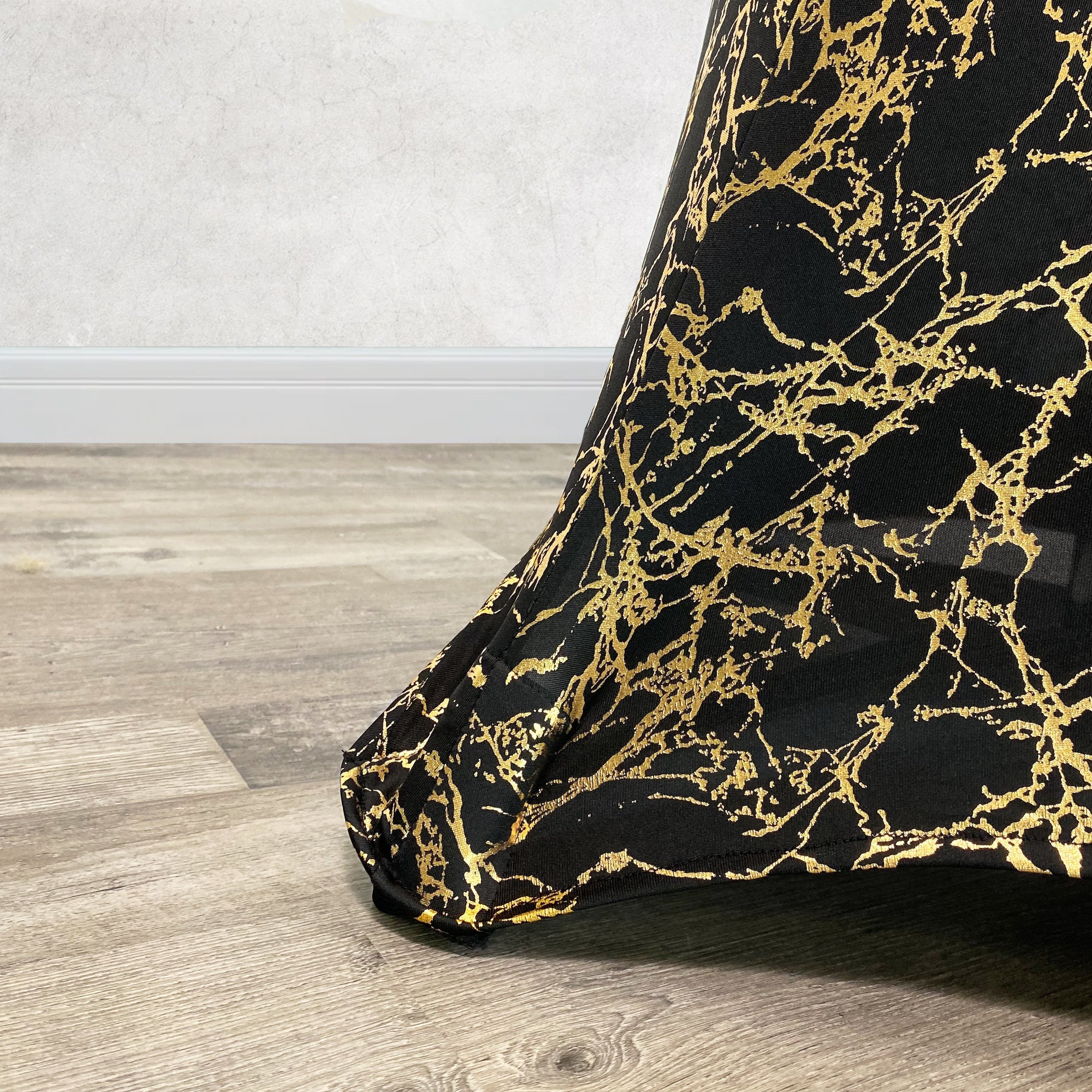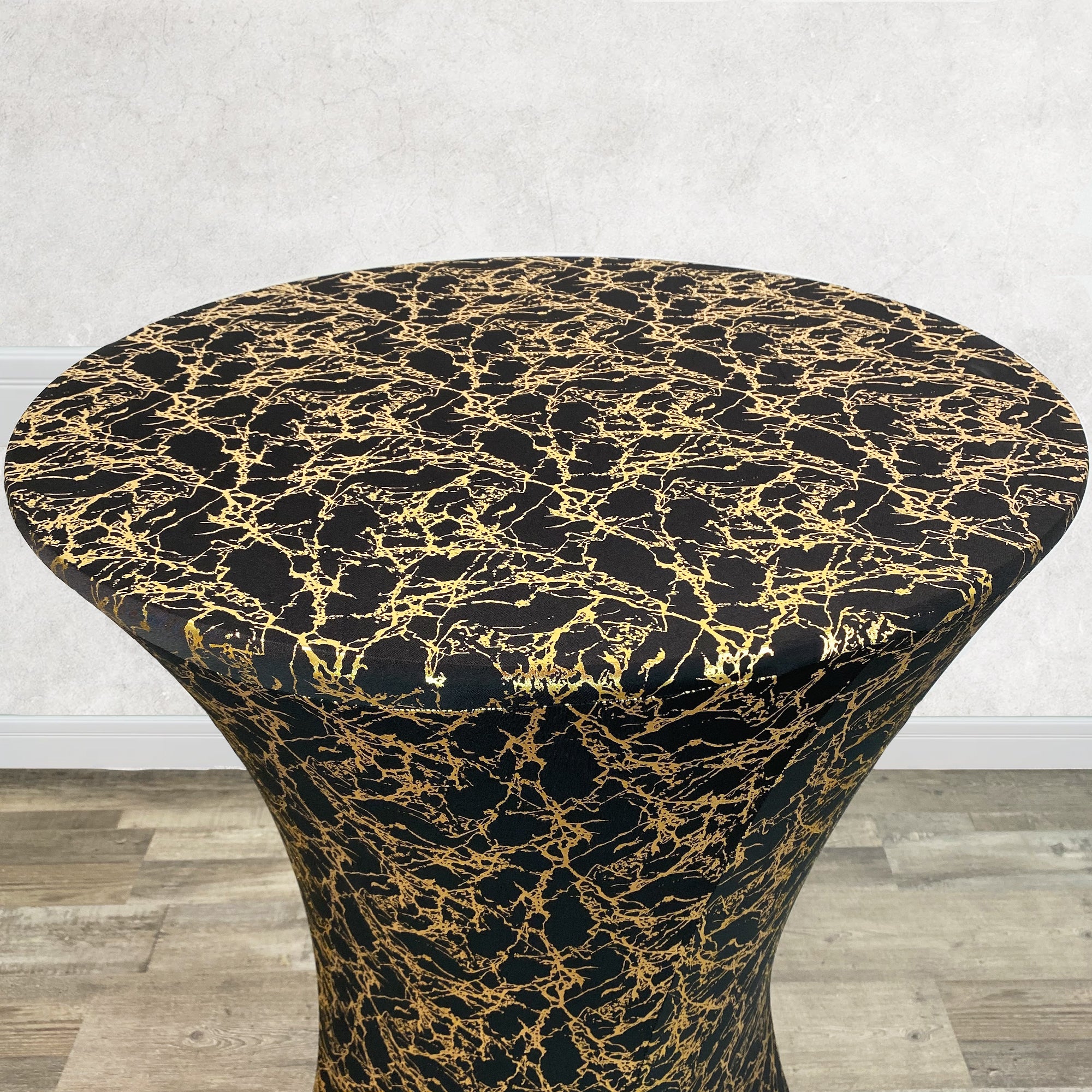 30 inch Highboy Cocktail Round Black Stretch Spandex Table Cover With Gold Marbling