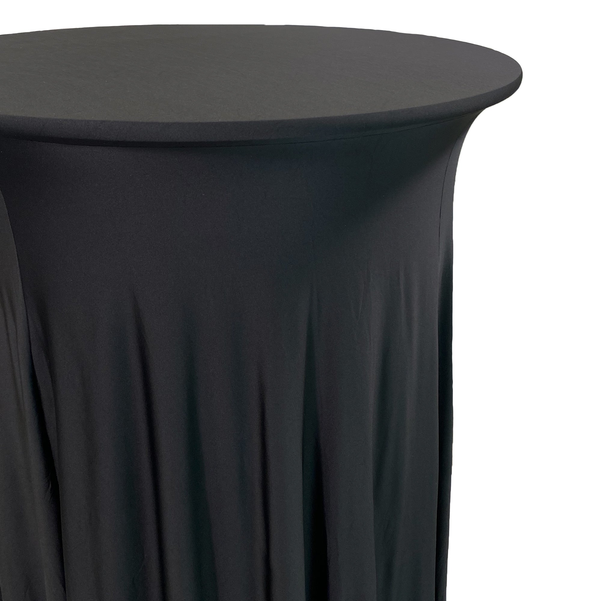 30 inch Wavy Spandex Highboy Cocktail Table Covers - Black. Stretch Tablecloths for 30" x 42" Round Top Cocktail Tables.