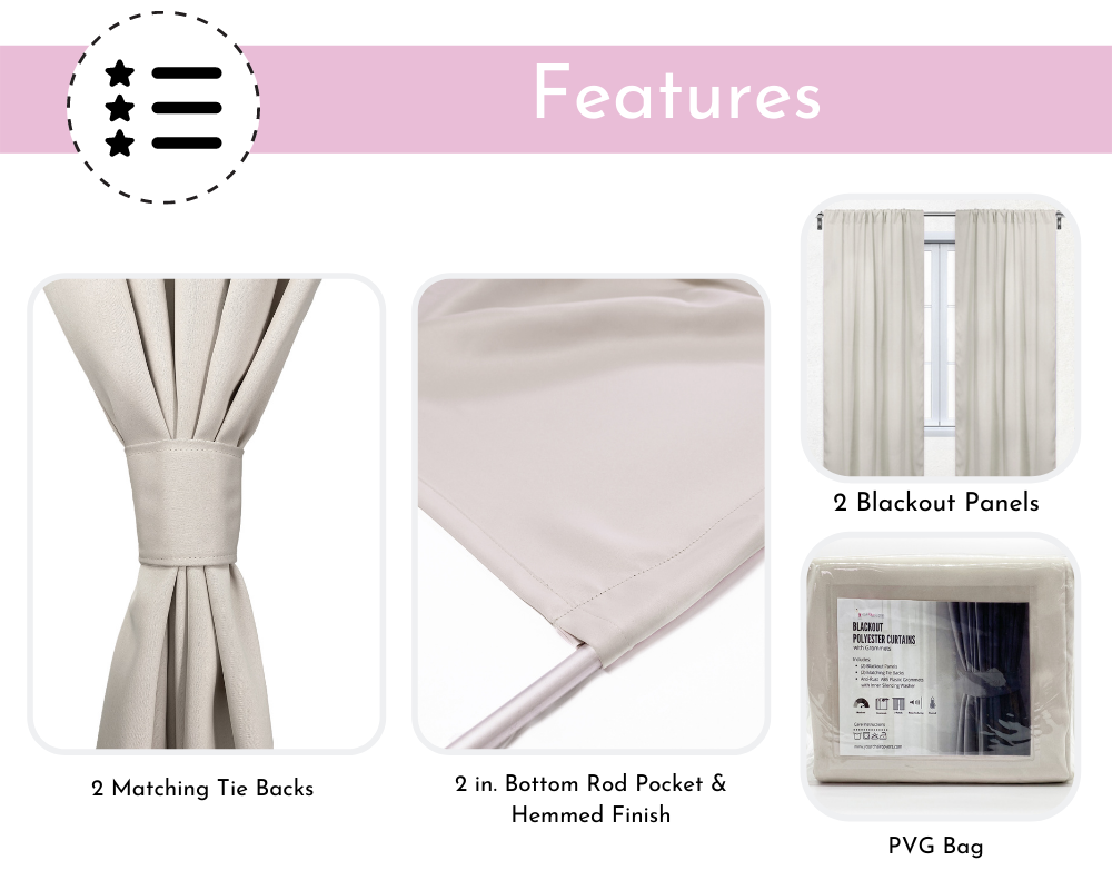 52 X 63 Inch Blackout Polyester Curtains with Rod Pocket Beige - 2 Panels - Bridal Tablecloth
