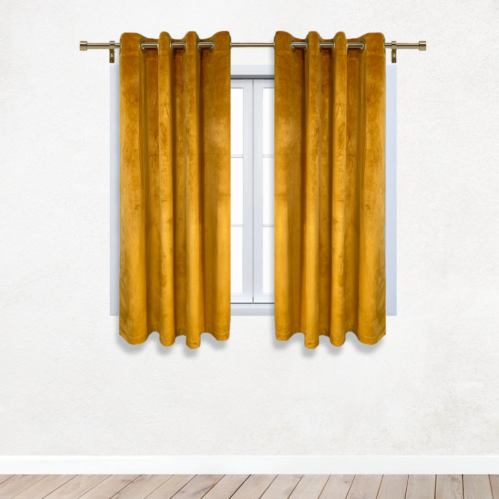 Velvet Curtains in gold are made from high-quality velvet material. These multipurpose curtains can be used to add allure and supplemental beauty for weddings, trade shows, or your home. Our gold velvet curtains include 2 soft drapable curtain panels; each panel measures 52 inches wide x 63 inches long and feature large plastic grommets on top and a 2 inch bottom rod pocket for different styling options. Additionally, our gold blackout polyester curtains provide privacy and are energy efficient. These blackout polyester curtains are sure to exquisitely compliment your décor and create a beautiful setting in any room.