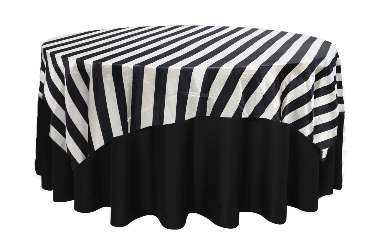 Designed to complement wedding tablecloths, square organza table overlays in Black and White Polka Stripedhave always been the go-to reception table accent for wedding planners, event coordinators and fine dining professionals. These 90 inch x 90 inch Black and White Polka Stripedtable overlays feature the silky-soft feel and sheer appearance that organza table linens are known for. Each Black and White Polka Stripedorganza overlay is luxurious to the touch, wide enough for wedding reception tables, and adds the perfect hint of glam and color.