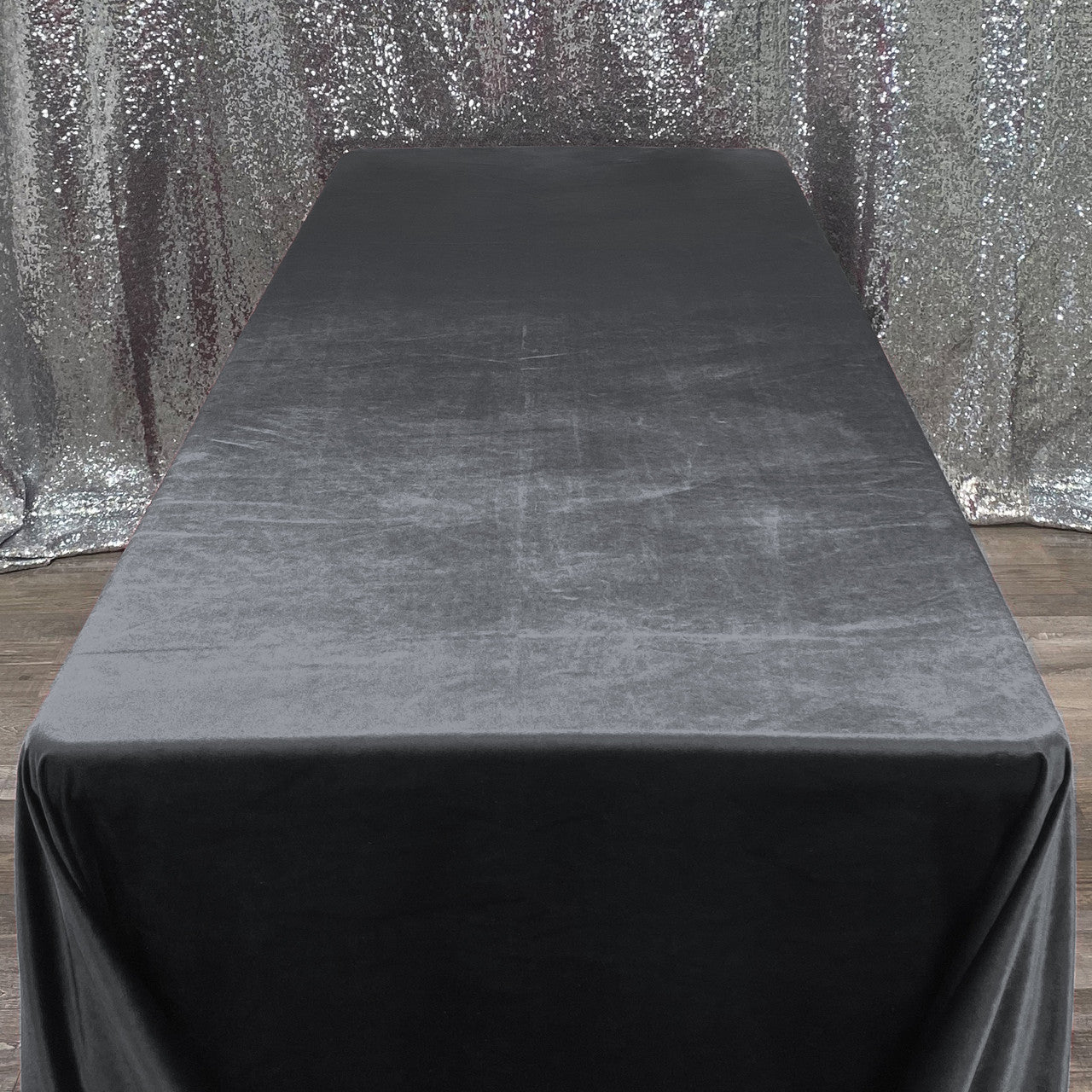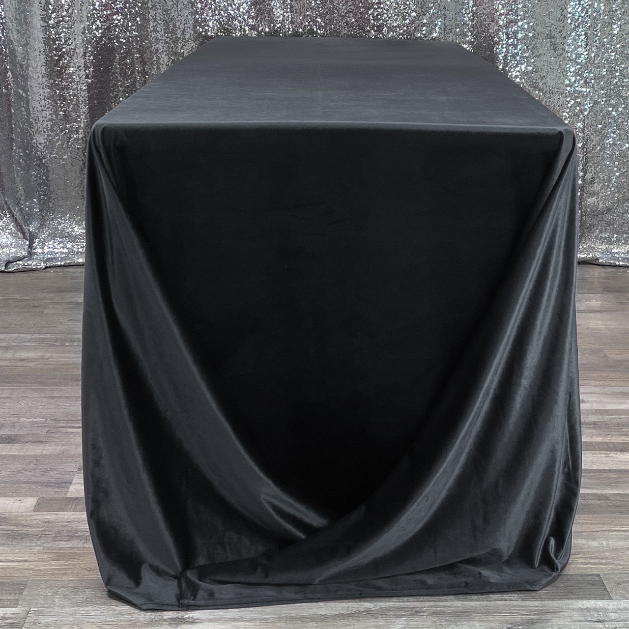 Experience the lap of luxury with the majestic look and feel of our 90 x 132 inch Rectangular Velvet Tablecloths - Black. This premium velvet tablecloth provides the ultimate level of elegance that captures the essence of pure royalty. Crafted from high-quality 275 GSM velvet fabric, our 90 x 132 in. Rectangular Velvet Tablecloths in black are designed to provide a floor-length drop on a standard 6-ft. rectangular table with a 30-inch height. Additionally, each tablecloth is seamless and features a hemmed finish setting the standard of sophistication further magnifying your event.