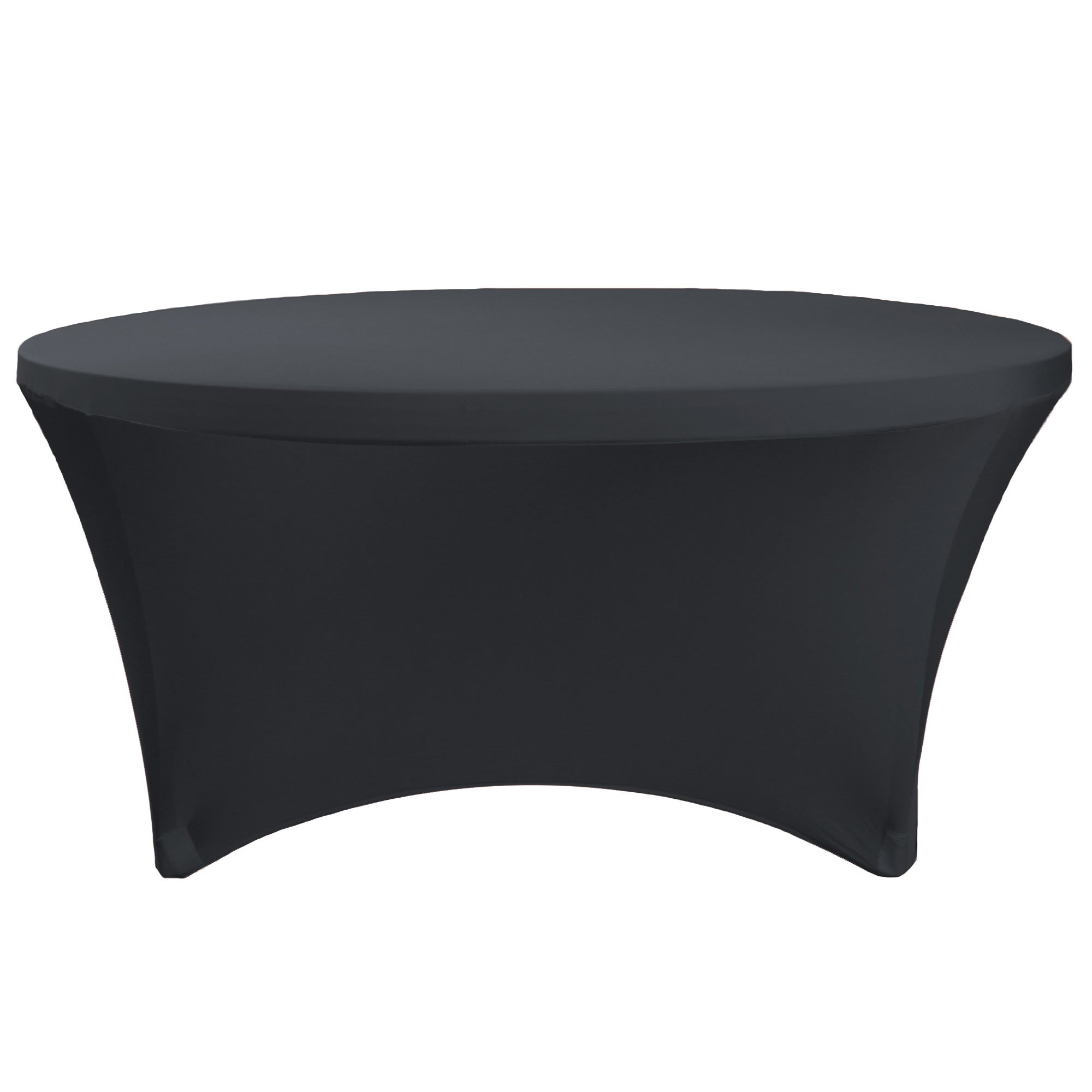 Made from high quality four-way stretch spandex material, our black stretch spandex 6 ft round table covers exemplify modern sophistication and luxurious elegance and are designed to fit 6 ft or 72" round tables with 30" height at weddings, casinos, hotels, restaurants and other special events. Black spandex tablecloths from Bridal Tablecloths have deep canvas foot pockets, are durable, do not require ironing and can be laundered countless times. Please note that there are inferior and cheaper versions of this black spandex tablecloth available in the market, ours is crafted from a hotel and restaurant quality spandex type of material.