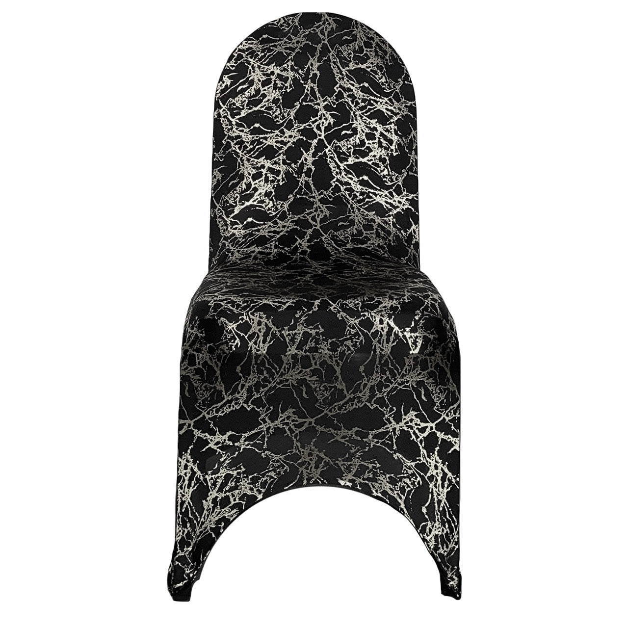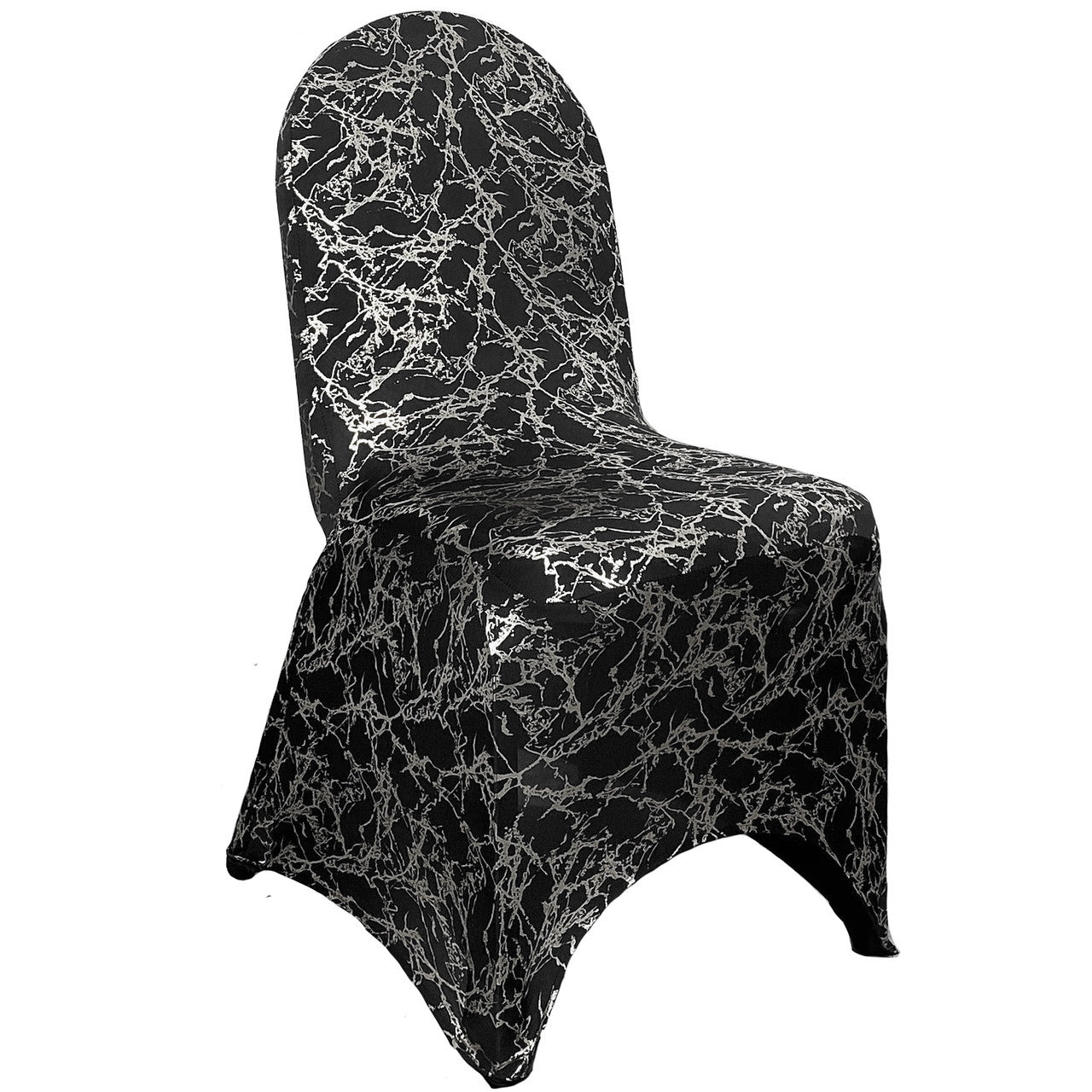 Stretch Spandex Banquet Chair Cover Black With Silver Marbling