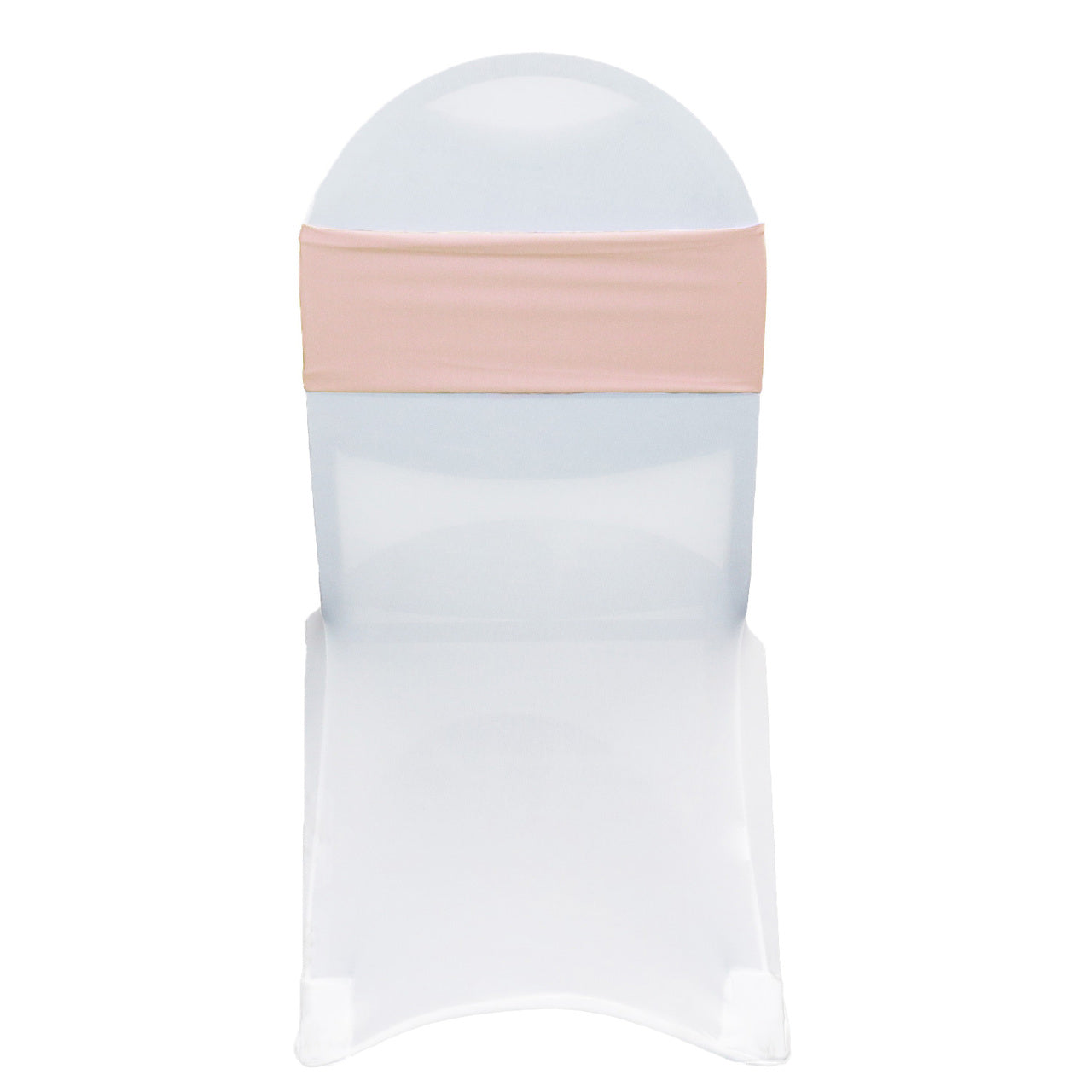 Our blush stretch spandex chair sashes exemplify modern sophistication and luxurious elegance. They are designed to fit chairs or chair covers in weddings, casinos, hotels, restaurants, and other special events. Blush spandex chair bands from Bridal Tablecloths are made from high-quality four-way stretch spandex material, are durable, do not require ironing, and can be laundered countless times. Please note that there are inferior and cheaper versions of this material available in the market, ours is crafted from a hotel and restaurant quality spandex type of material.
