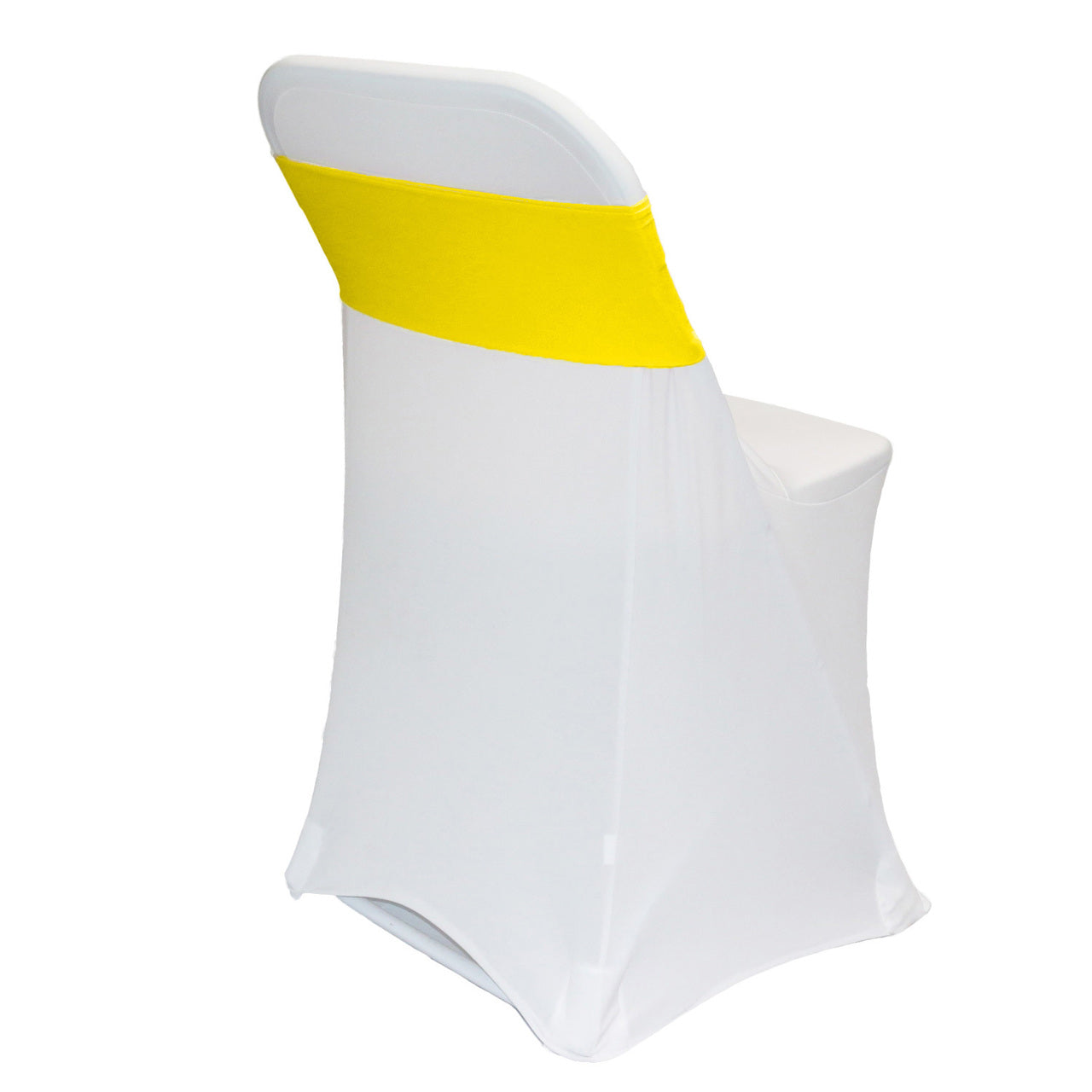 Our Yellow stretch spandex chair sashes exemplify modern sophistication and luxurious elegance. They are designed to fit chairs or chair covers in weddings, casinos, hotels, restaurants and other special events. Yellow spandex chair bands from Bridal Tablecloths are made from high quality four-way stretch spandex material, are durable, do not require ironing and can be laundered countless times. Please note that there are inferior and cheaper versions of this material available in the market, ours is crafted from a hotel and restaurant quality spandex type of material.