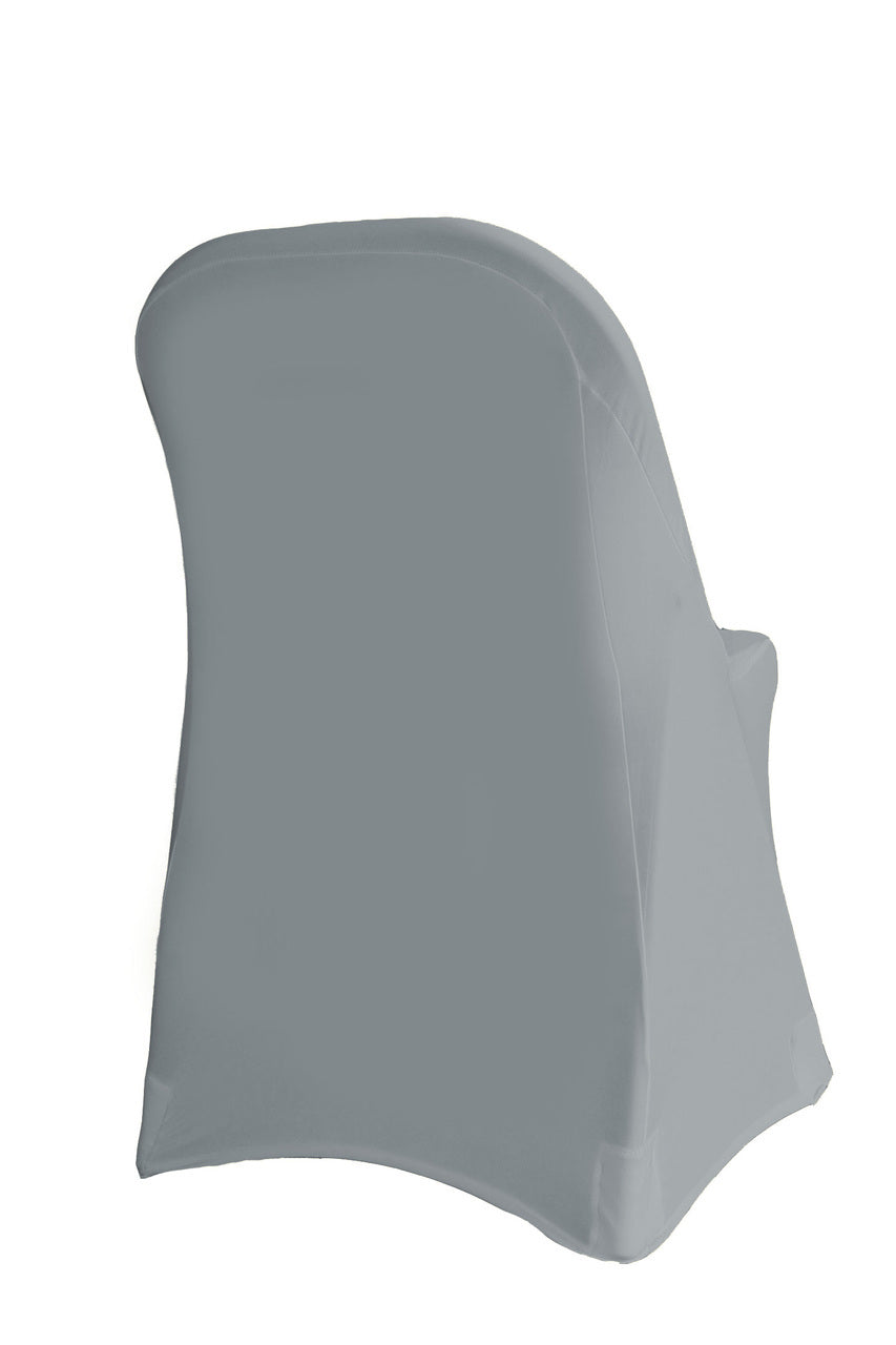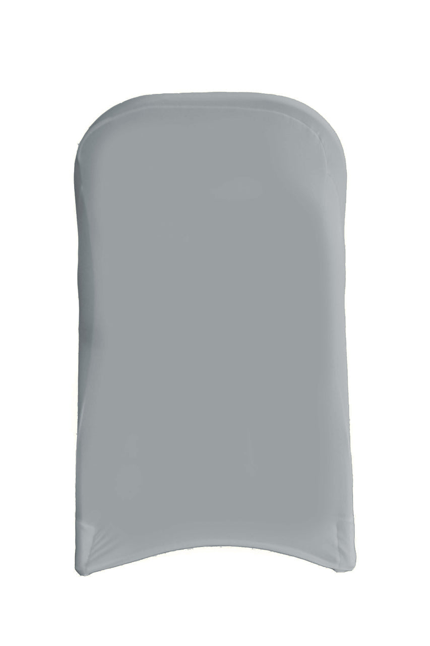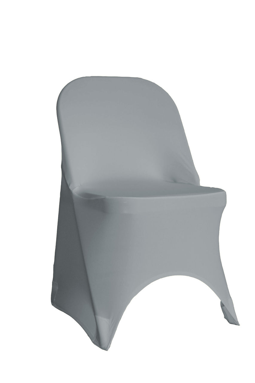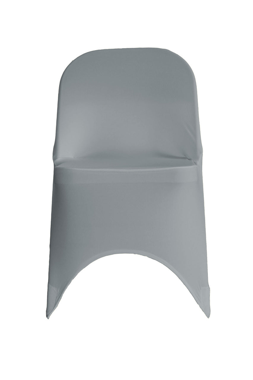 Made from high-quality four-way stretch spandex material, our Gray stretch spandex folding chair covers exemplify modern sophistication and luxurious elegance and are designed to fit standard folding chairs at weddings, casinos, hotels, restaurants and other special events. Gray spandex chair covers from Bridal Tablecloths have deep canvas foot pockets, are durable, do not require ironing and can be laundered countless times. There are cheaper versions of this material available in the market, ours is crafted from a hotel and restaurant quality spandex type of material.