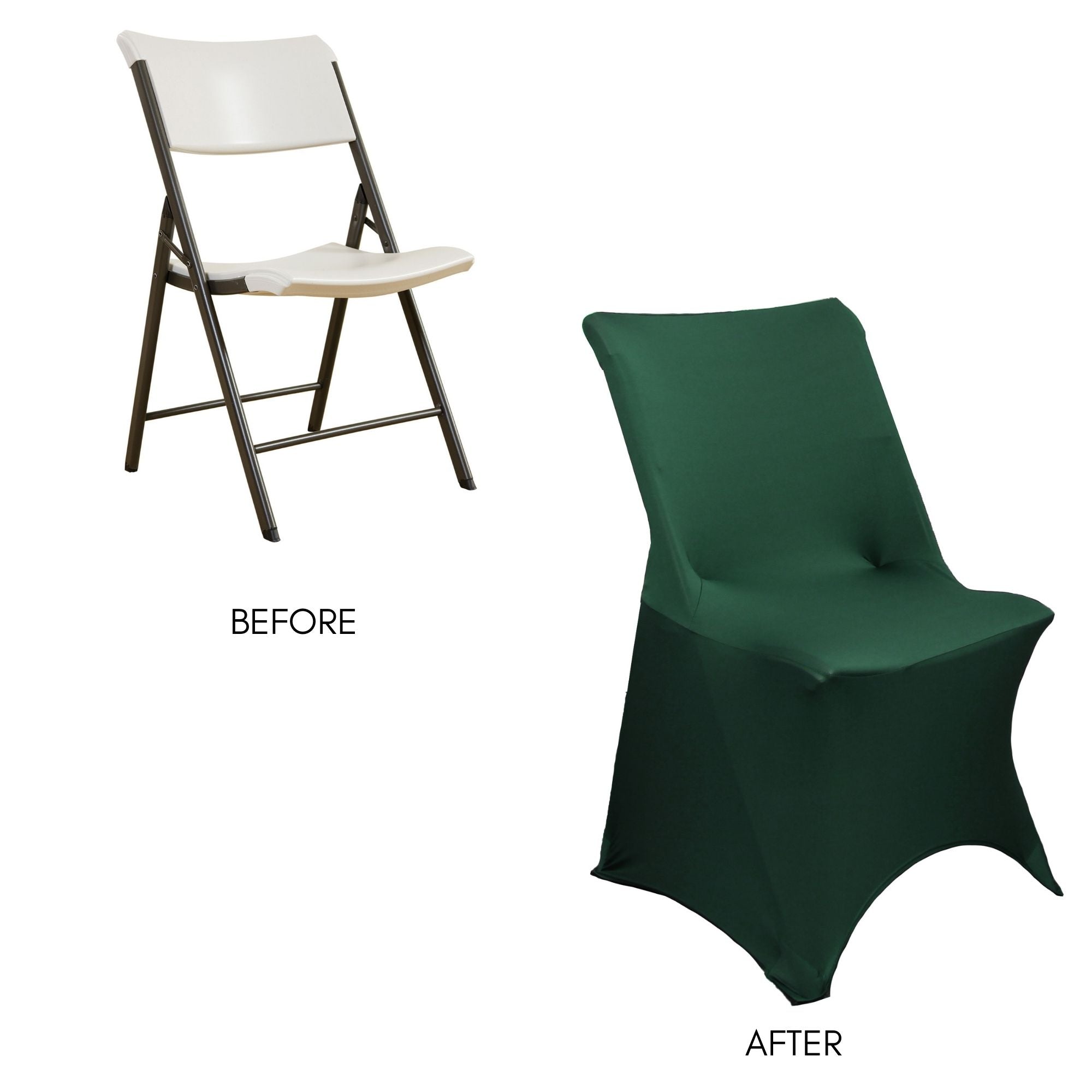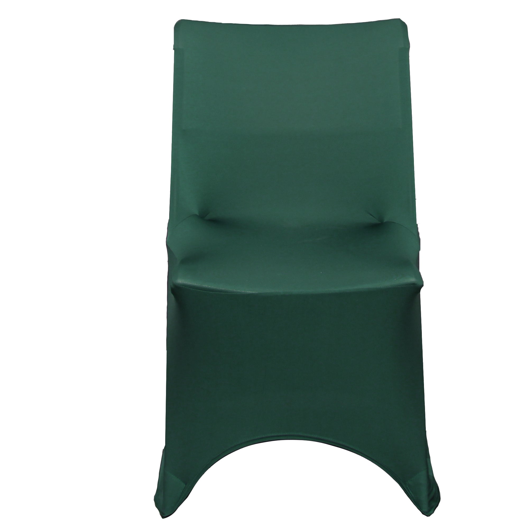 Durable and of premium quality, our spandex lifetime folding chair cover in hunter green is designed to lifetime folding chairs. Made from high quality four-way stretch spandex material, our hunter green stretch spandex chair covers exemplify modern sophistication and luxurious elegance. For years now, we've been supplying these stretch chair covers to chair cover rental companies, restaurants, wedding venue owners, hotel and catering business owners. These types of chair slipcovers stylishly contour folding chairs, giving them the sleek, formal appearance. Hunter Green spandex chair covers from Bridal Tablecloths have deep elastic foot pockets, do not require ironing and can be laundered countless times. If you're planning a lavish event, chair covers from Bridal Tablecloths make an excellent choice because our wholesale tablecloth and chair cover company is known for meeting hotel and restaurant product quality standards.