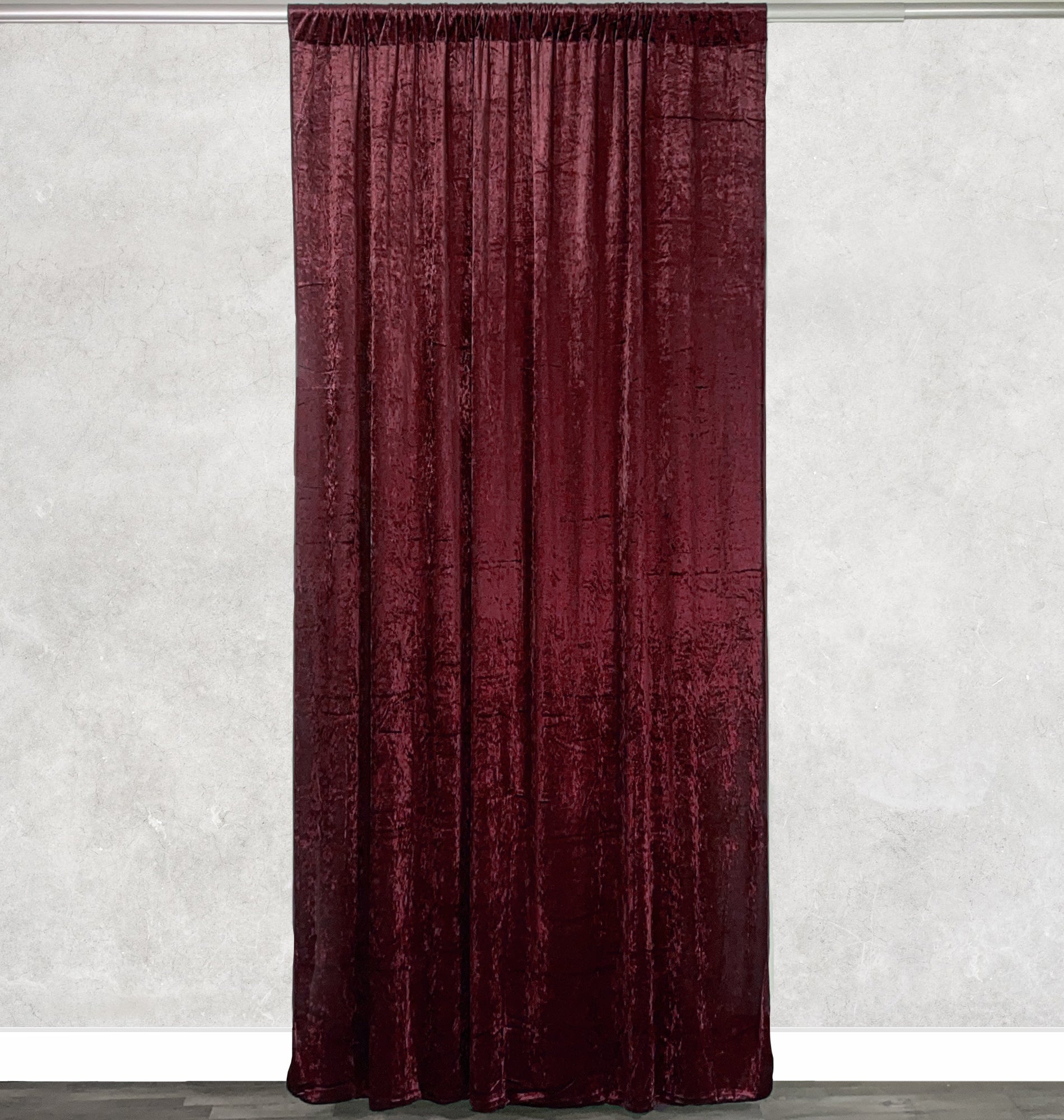 Velvet Drape/Backdrop 12 ft. x 60 Inches Burgundy are made from high-quality velvet material and feature 4 inch rod pockets. These multipurpose drapes can be used to add allure and supplemental beauty for weddings, trade shows, birthdays, and any event that requires the coverage of walls or ceilings. Why rent drapes if you can purchase them brand new for the cost of a rental? These premium backdrops are a great addition to an event planner’s inventory, and also, for DIY brides. These Burgundy drapes/backdrops will exquisitely compliment your décor and create a beautiful setting for your special day.