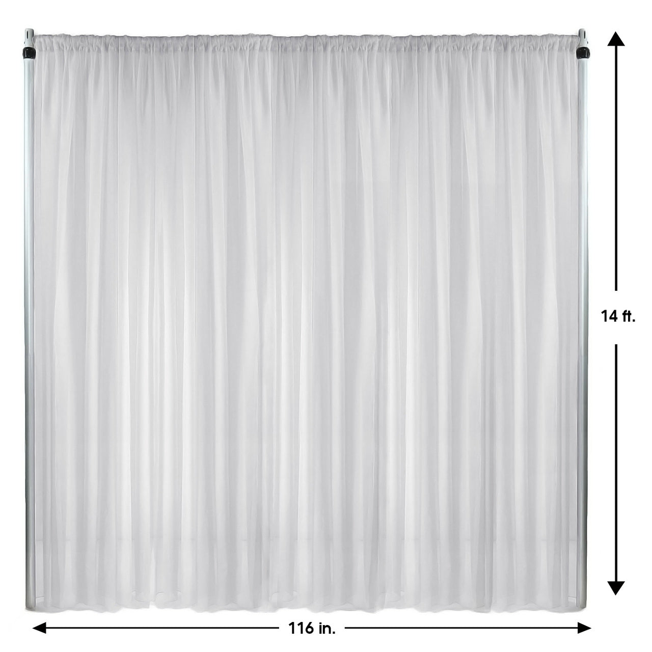 Voile Sheer Drape/Backdrop 14 ft x 116 Inches White is made from high-quality voile material. These multipurpose drapes can be used to add allure and supplemental beauty for weddings, trade shows, birthdays, and any event that requires the coverage of walls or ceilings. Why rent drapes if you can purchase them brand new for the cost of a rental? These premium backdrops are a great addition to an event planner’s inventory, and also, for DIY brides. These Black drapes/backdrops will exquisitely compliment your decor and create a beautiful setting for your special day.