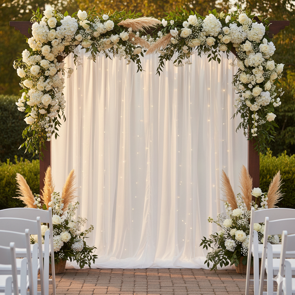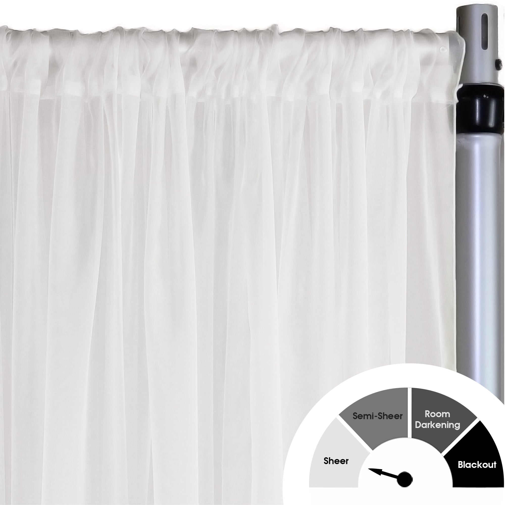 Voile Sheer Drape/Backdrop 8 ft x 116 Inches White is made from high-quality voile material. These multipurpose drapes can be used to add allure and supplemental beauty for weddings, trade shows, birthdays, and any event that requires the coverage of walls or ceilings. Why rent drapes if you can purchase them brand new for the cost of a rental? These premium backdrops are a great addition to an event planner’s inventory, and also, for DIY brides. These Black drapes/backdrops will exquisitely compliment your decor and create a beautiful setting for your special day.